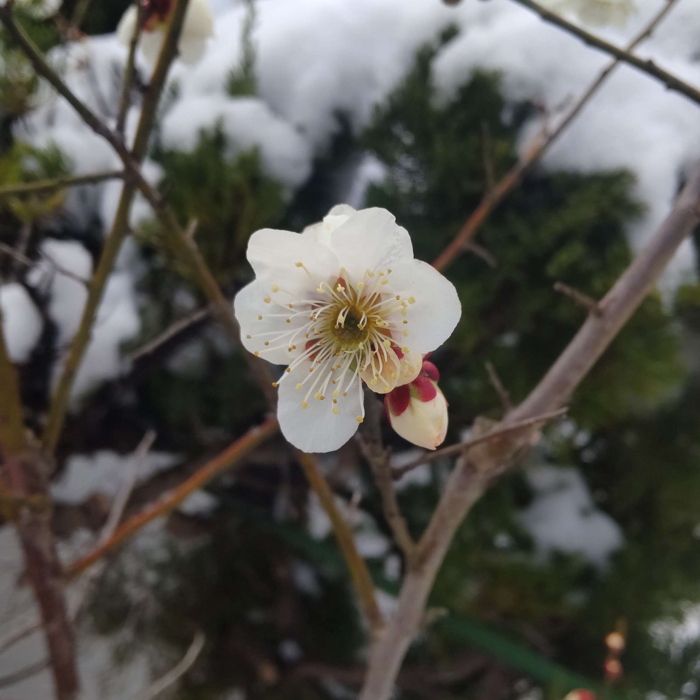 これは2月23日のことですが、私のアパートから生協までの道中にある教会の庭で梅の花が咲いているのを見つけました。