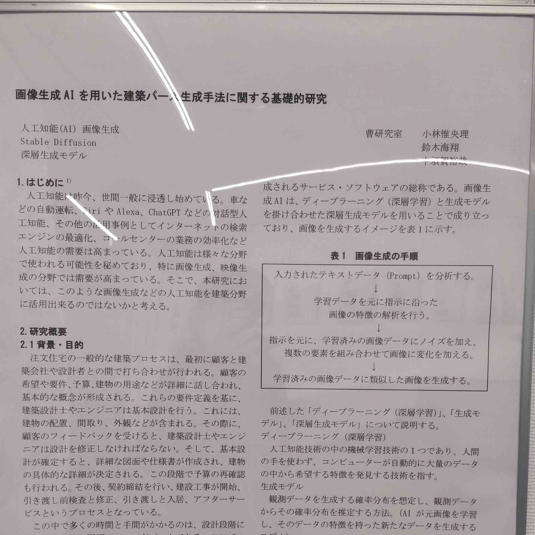 まずは、これですね。「画像生成AIを用いた建築パース生成手法に関する基礎的研究」……いいですね、いかにも理系の卒論って感じのタイトルです。そして生成AIといえば、最近じゃほとんどの人が「聞いたことがある」程度の浸透度合いを見せている代物です。私も文芸オタクではありますが、一応ITパスポート試験に合格するくらいの知識はありますから、ちゃんと最後まで読んで「そういうものなのだな……」と得心することができました。