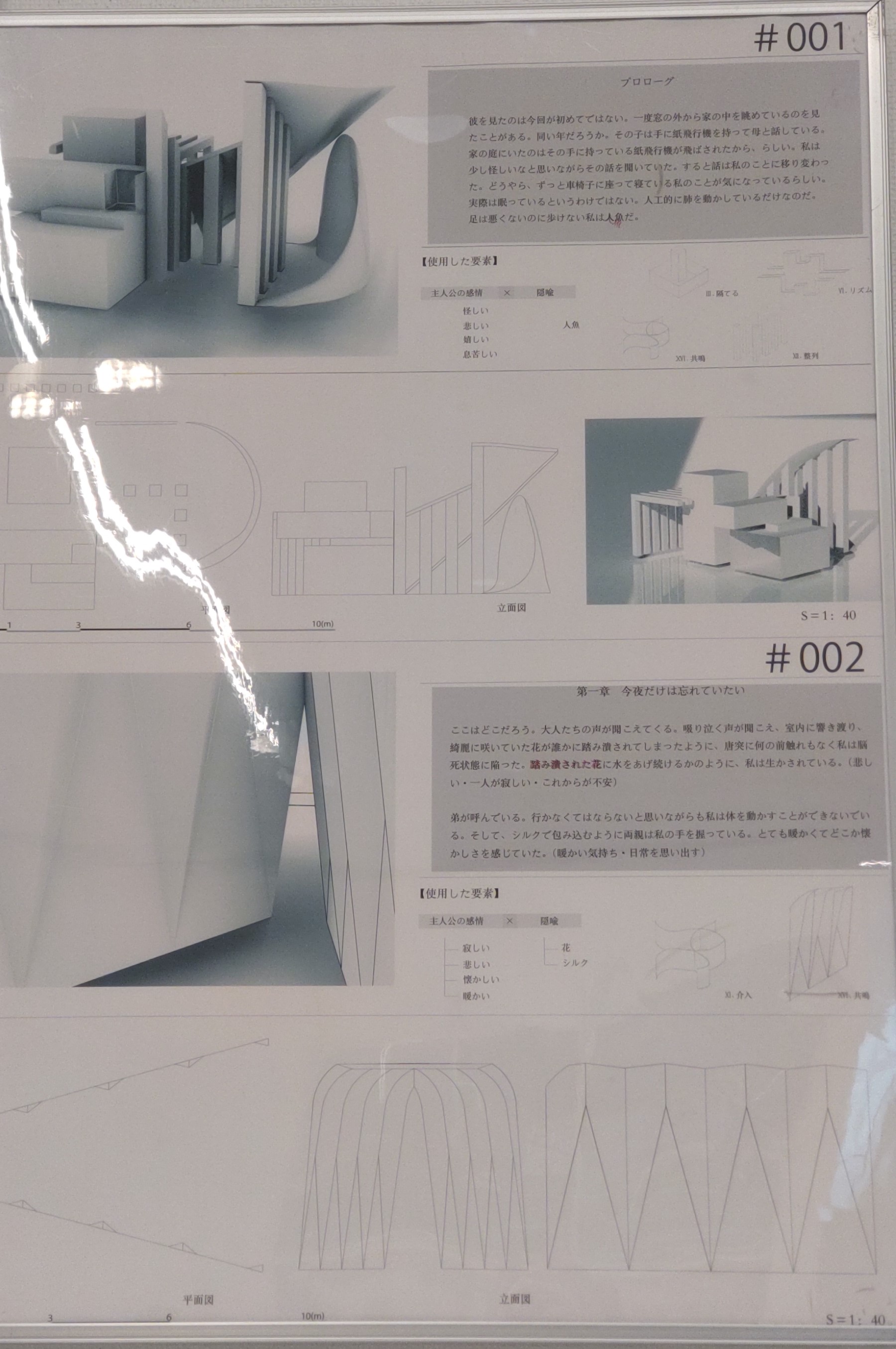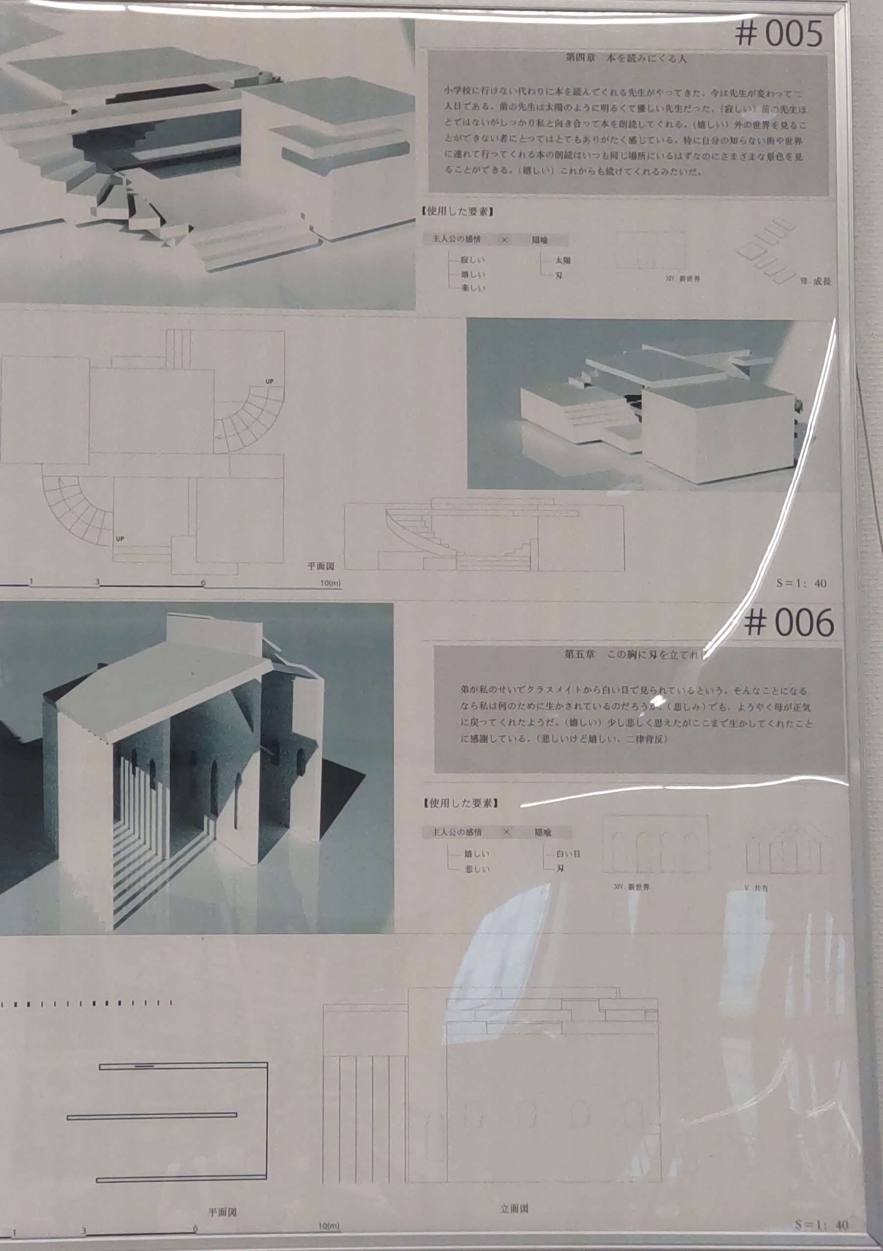 「記憶をもとに設計し記憶を積み重ねながら暮らしていける家」「緑の侵食をうけながらも残り続けたいという建物の意志を汲んだデザインの在り方」「台湾の新竹市にある軍需工場の遺跡を再利用した『異空間並置設計論』」「現在の日本人の死生観を改めるための『葬儀~後に故人と向き合う場』の建築デザイン」……撮りまくった写真を振り返り、そこに書かれた記事をしっかり読み返すことで、どれもこれも面白いなあと思ったのですが、文芸オタクとして最も深いところに突き刺さった研究を取り上げます。