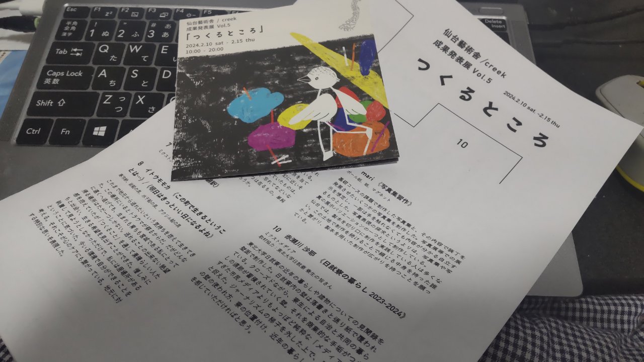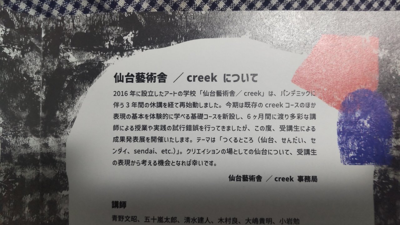 その一方で今回の仙台藝術舎/creek成果発表展も含め、昨年秋から色んなイベントに(観る側の人間として)参加しました。そしてローカルな世界で共有する作品や人との交流をたくさん体験し、少しずつ私がやりたいことを思い出し、再構成してきました。