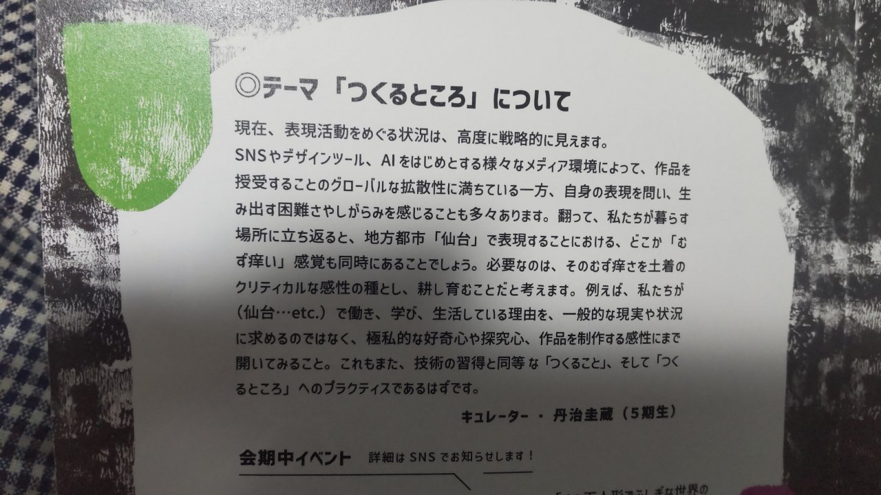 本展覧会のテーマ 「つくるところ」 を問いかけとすると、 私のアンサーは「仙台の中にある閉じられたモノ・コト」へ向ける興味関心なのだと思う。