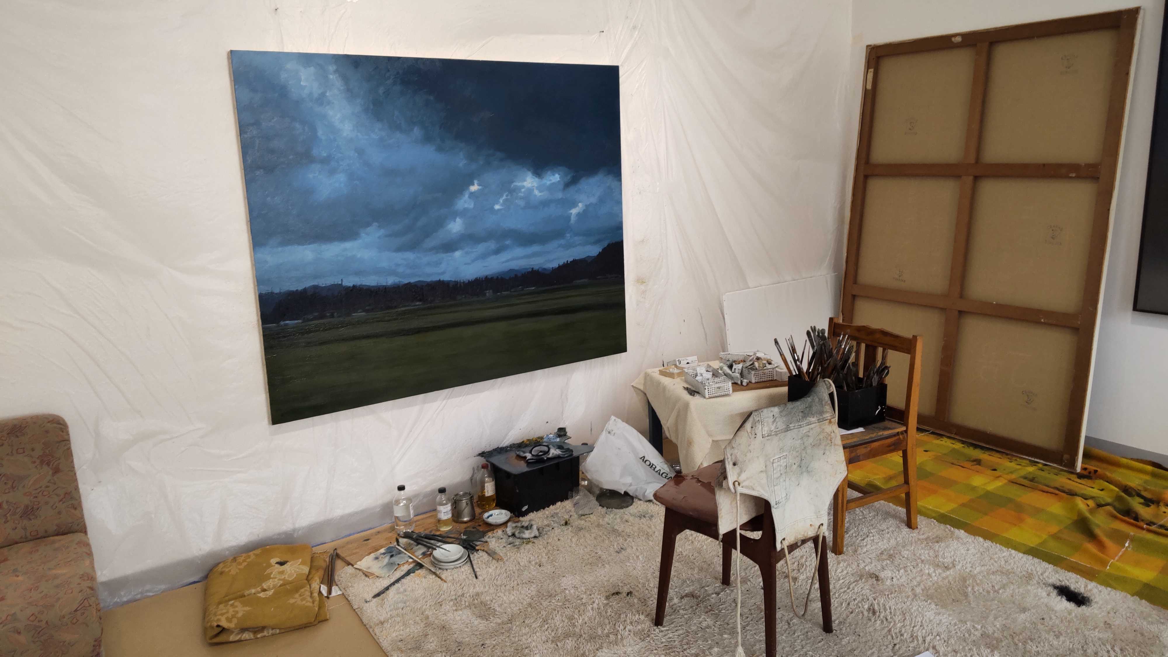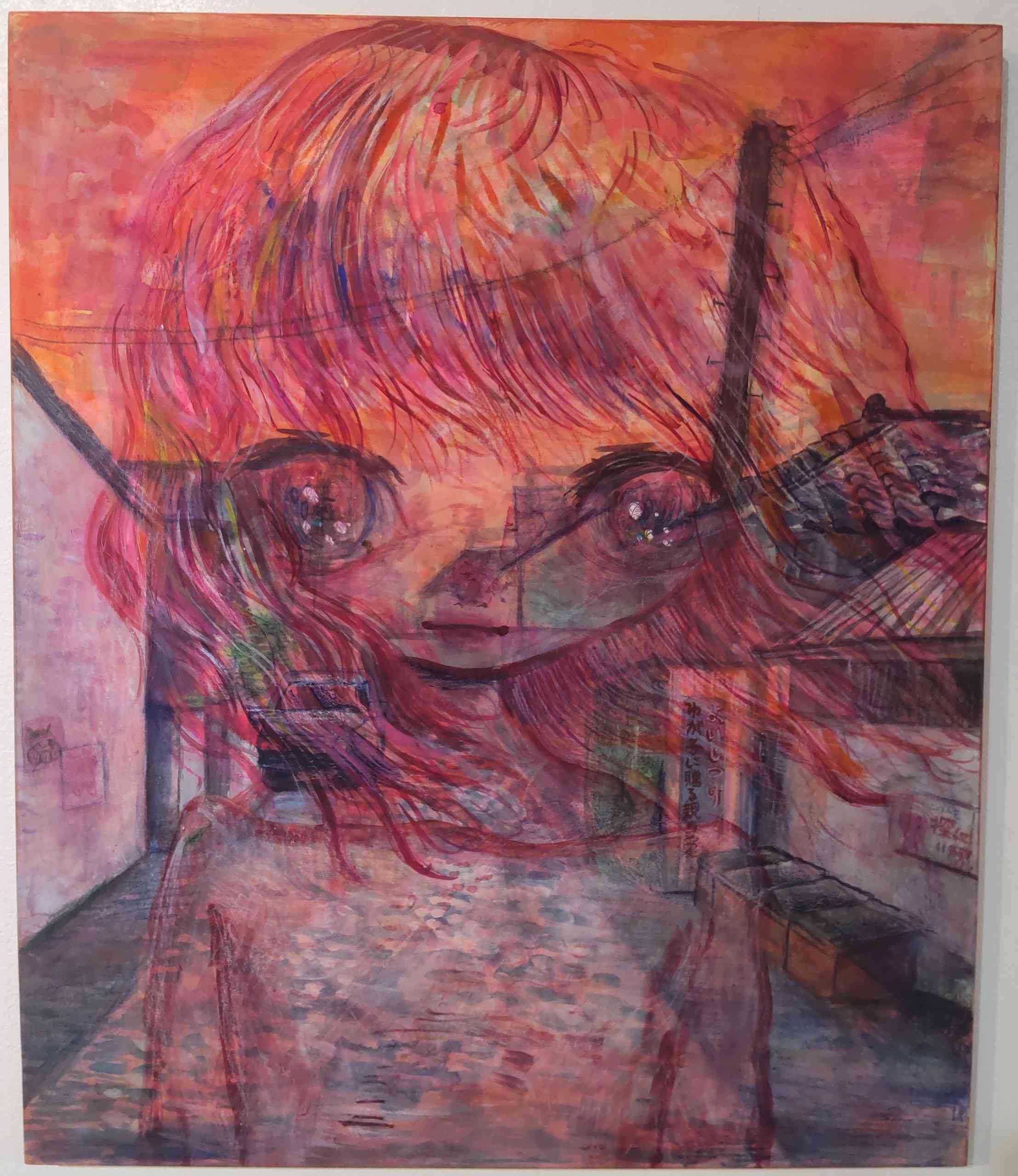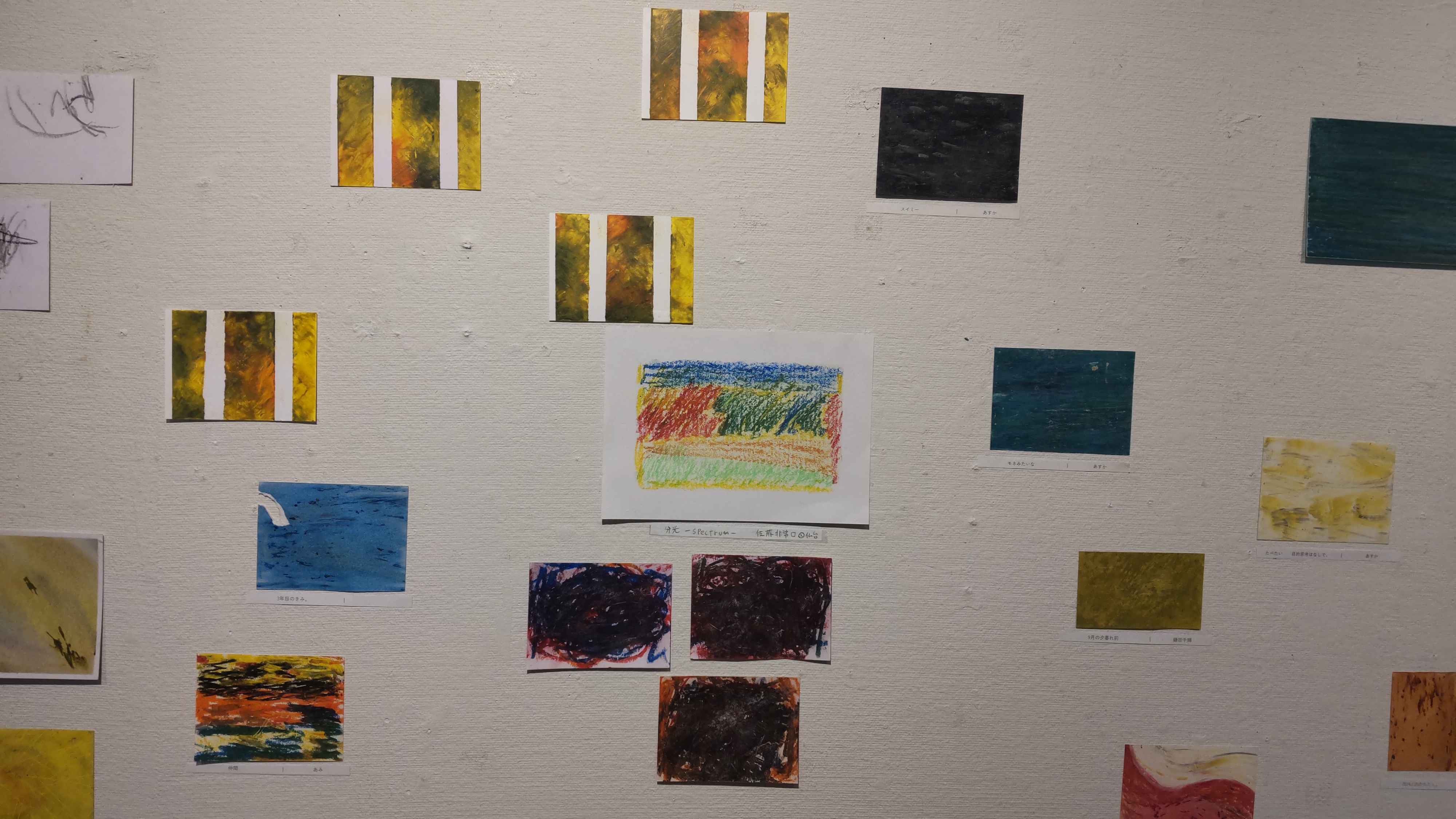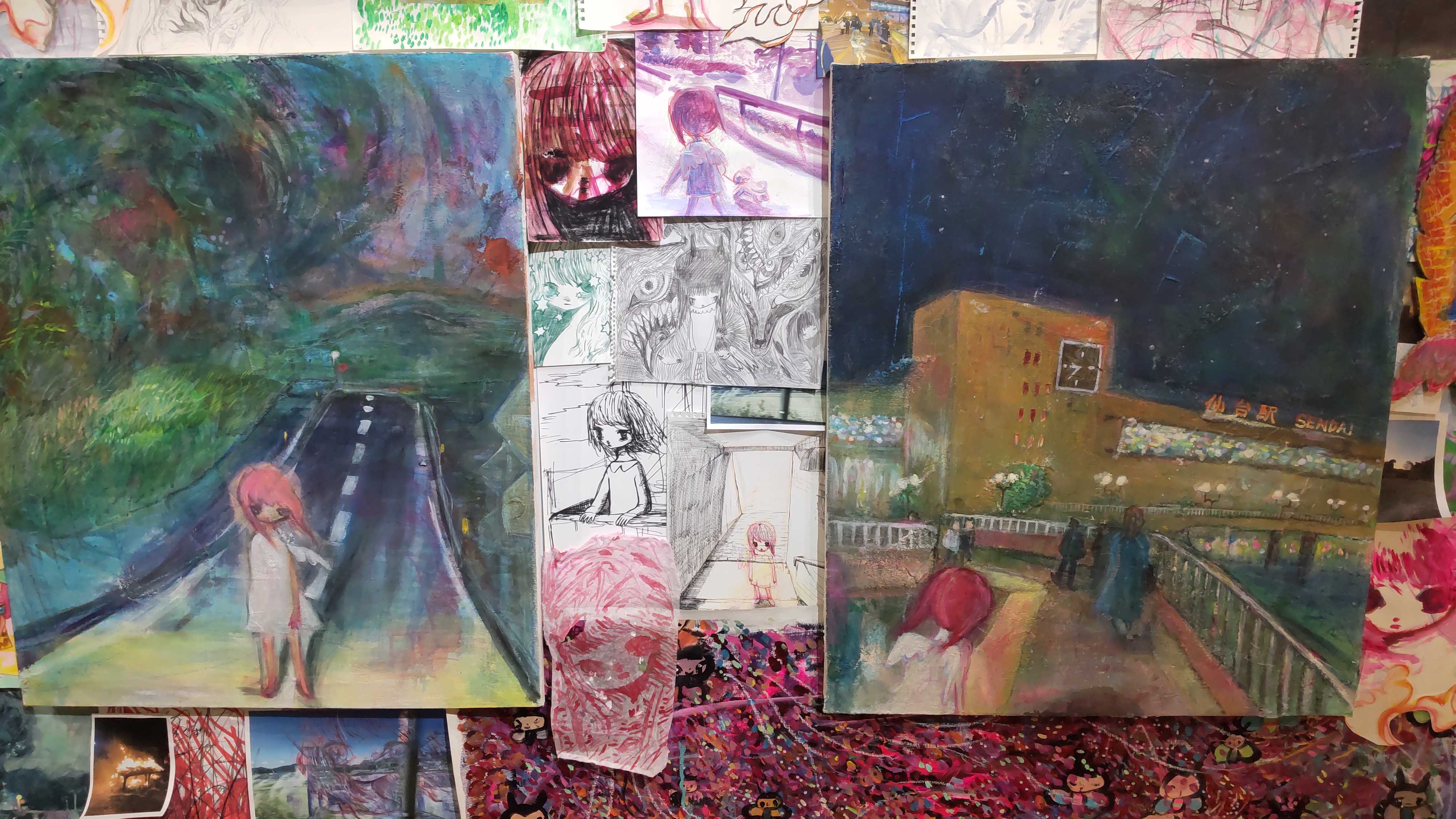 主に作品は2種類の方法で作り分けがされていました。ひとつは自分の記憶の中にあるイメージを、特に写真とかを観ずにそのイメージのまま描き出した作品であり、もうひとつはスマホの画像をいったん印刷し、それに手を加えるという方法で行われたものです。