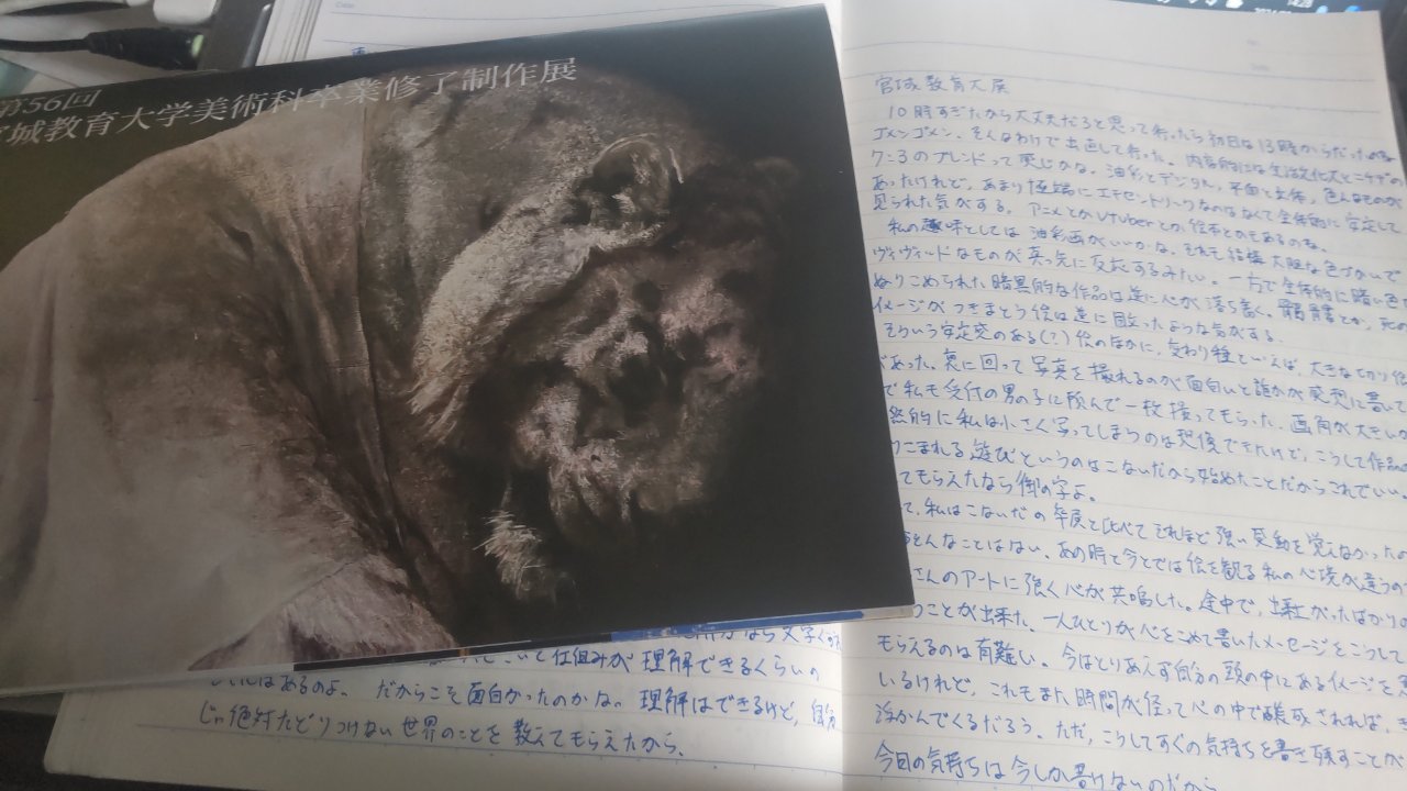 書くためにその内容を読み返し、それをもとに自分で文章を書いてみると……美術展の感想と違って、初めからきちんと理論が出来上がっているものを書くので、ある程度伝えやすかったのかな、という気がします。いつも形の無いマグマみたいな感情を拙い語彙力で何とか形にして作り上げてきたのですが、幾何学的精神というか、より論理的で立体的な伝え方が出来るように頑張らなくちゃいけないな、という新しい目標が見えてきました。それをどこまで実現出来るかは未知数ですが、やはり文章で伝えるためには、そういった技術も身に付けなくてはいけませんよね。