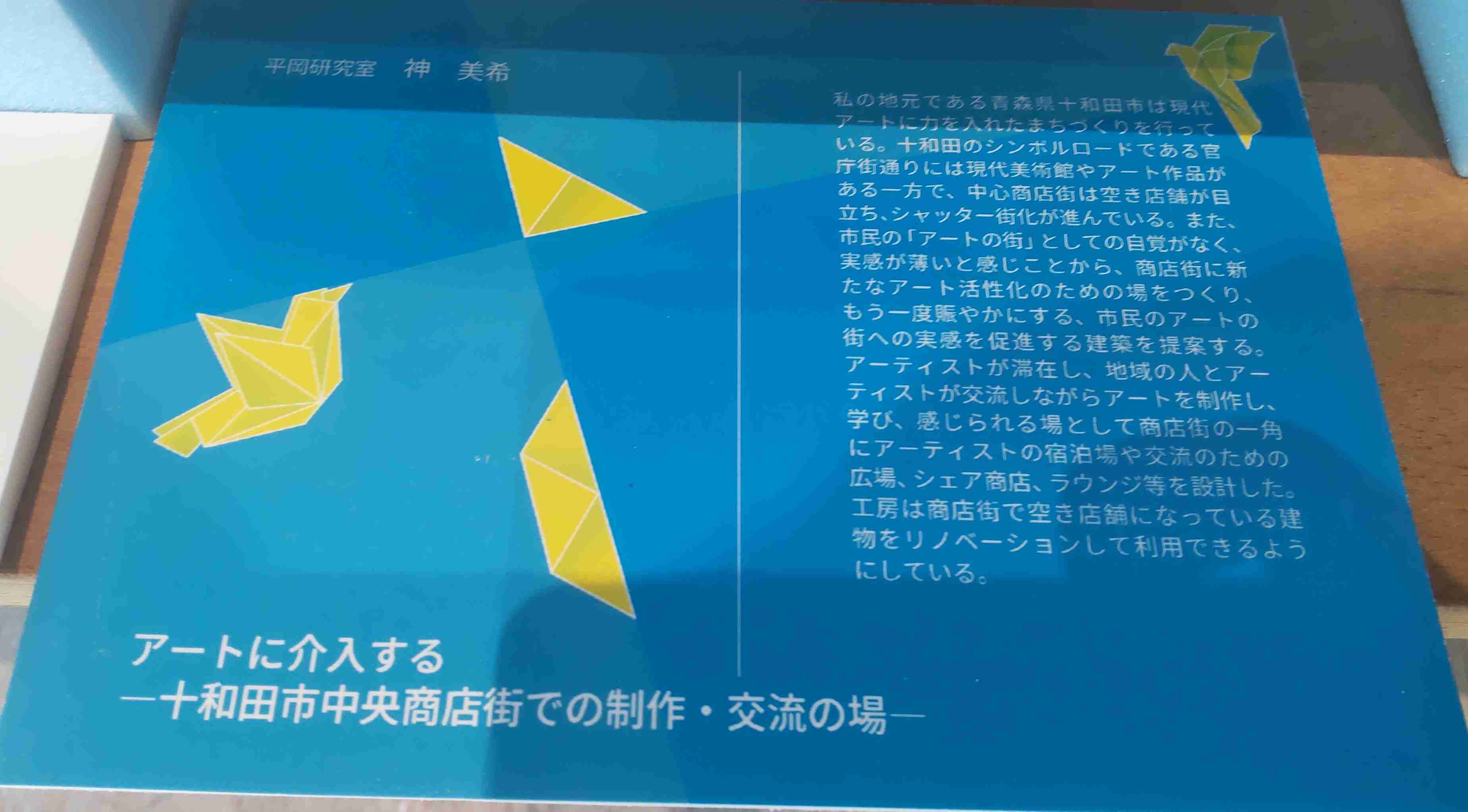 テーマにしても、私たちが住んでいる街のこととか身近なものを取り上げて、それを深く掘り下げて研究成果としているから入りやすいし。パネルとして掲げられているサマリーも、誰でも理解できるようわかりやすくまとめられているし。そうして色んなことを知って、新しい考え方――そこまで大上段に構えなくても、日々の生活の中でそれまでとは少し違ったものの見え方や気づきが生まれ心が動く瞬間が増えるようになれば、私はそれでいいと思うし、研究成果としても成功だと思うのです。