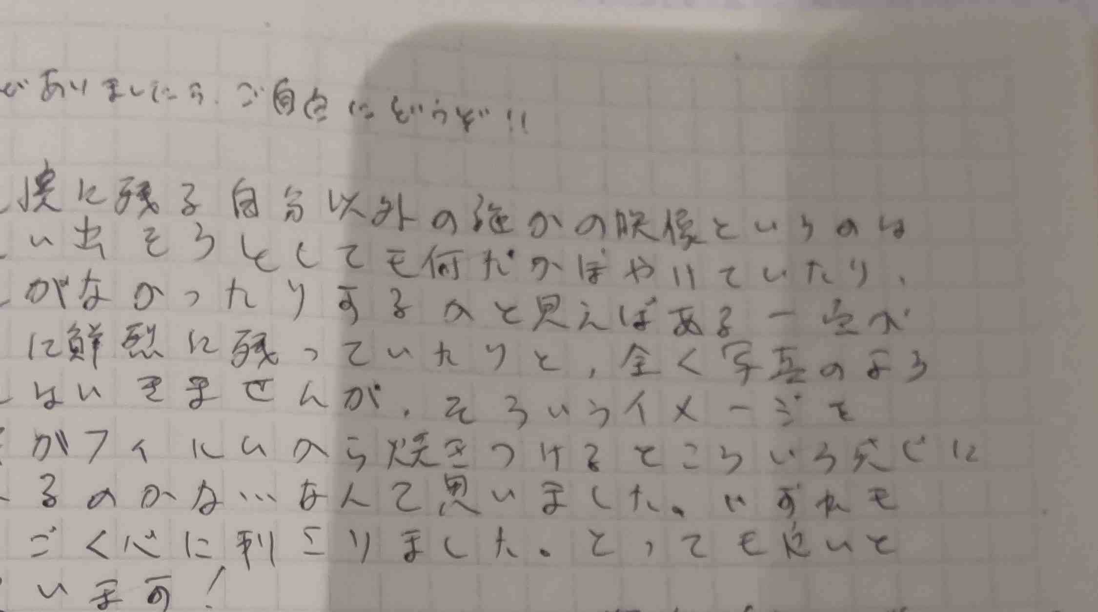 そして今日は……逢えない代わりに、またお手紙を書いて渡してもらおうかと思っています。こないだ門眞妙さんには「手書きの文章を写真に撮ってメールで送る」というヘンテコな手段を取りましたが、今度は「ギャラリーの人に渡してもらうようお願いする」という少し古風な手段を試みます。まさか断られることは無いと思いますが、とにかく最善を尽くします。渡してもらえないなら仕方がありません。