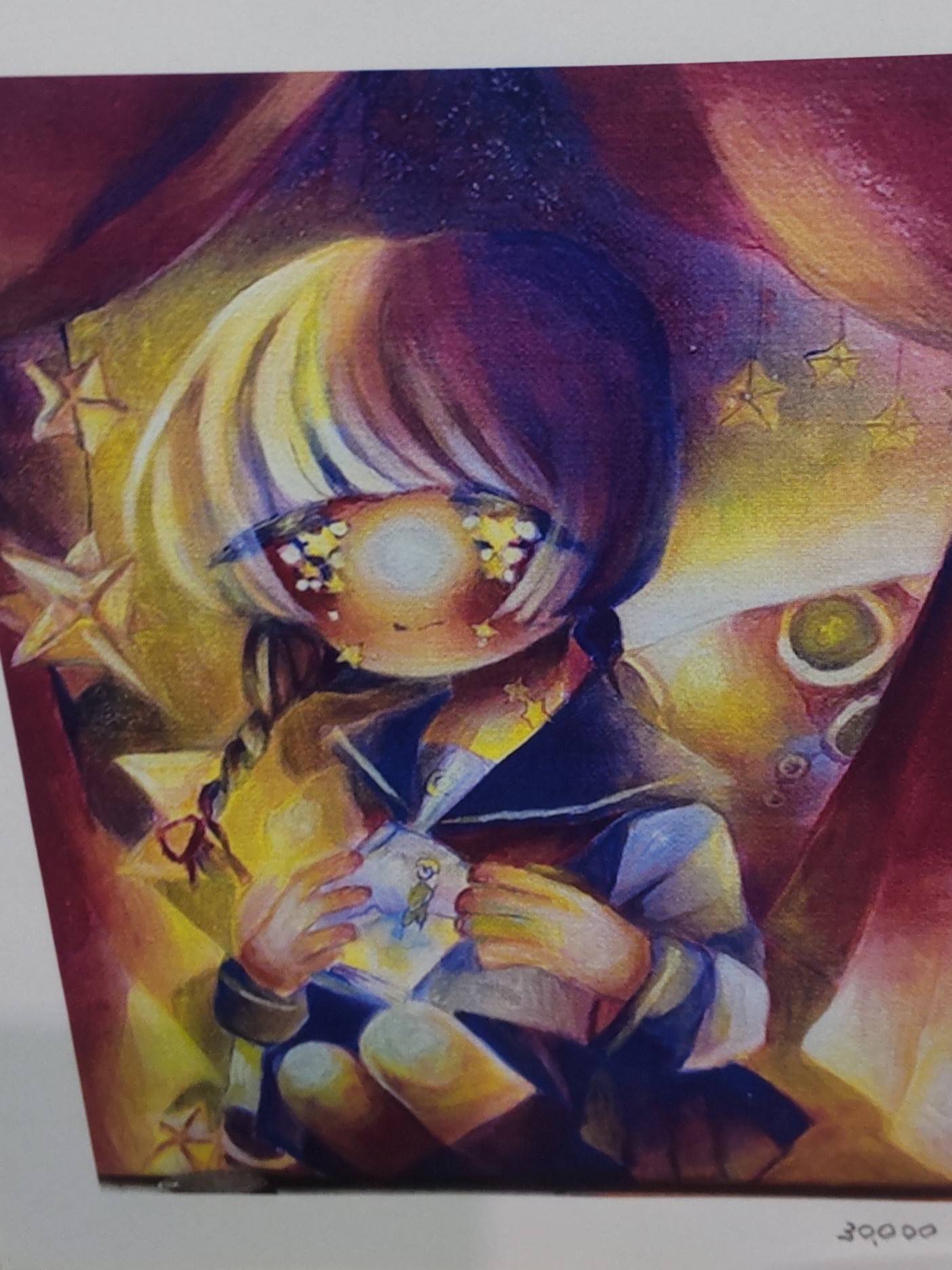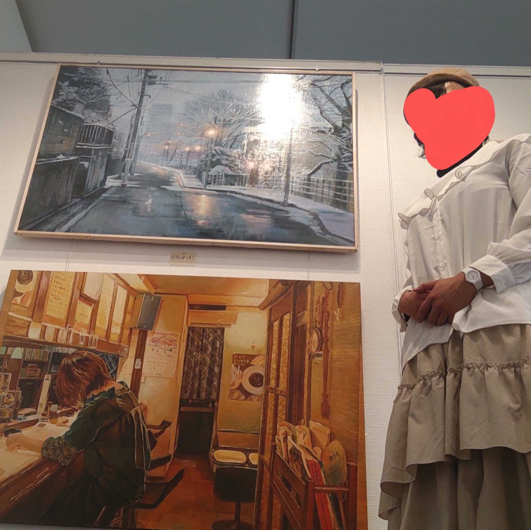私が現場にいて、この場にいないさかいふうかさんにお礼状と感想を伝える手紙を書いている時、絵の前でインタビューを受けている人がいて……