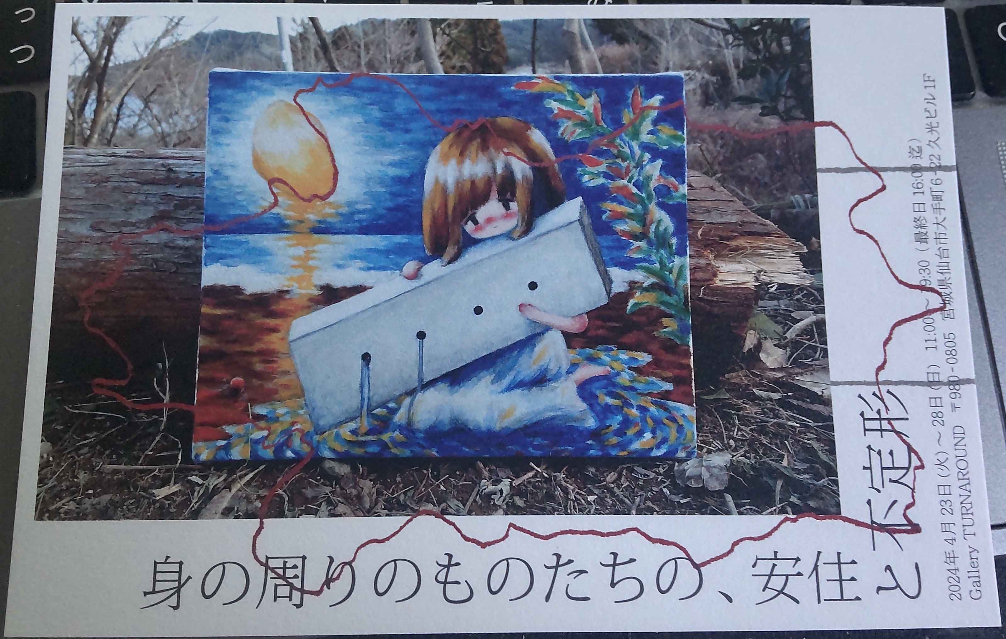 玄関先で声を上げてしまいました。それは私にとって最大級に大好きな美術家「さかいふうか」さんが手ずから差し出してくれた美術展の案内はがきだったのです! 確かに3月の個展でお会いした時次は5月くらいに展示に参加する予定なんですよ~とおっしゃっていたし、さかいふうかさんのInstagramで開催情報をいち早くキャッチして行く気満々ではあったのですが……そして最近いつもそうしているように美術展の芳名帳には律儀に住所を書いてDM大歓迎の態勢を整えていたのですが……まさか、まさか本当に、それも私なんかに手ずから案内状をくださるとは……!!!