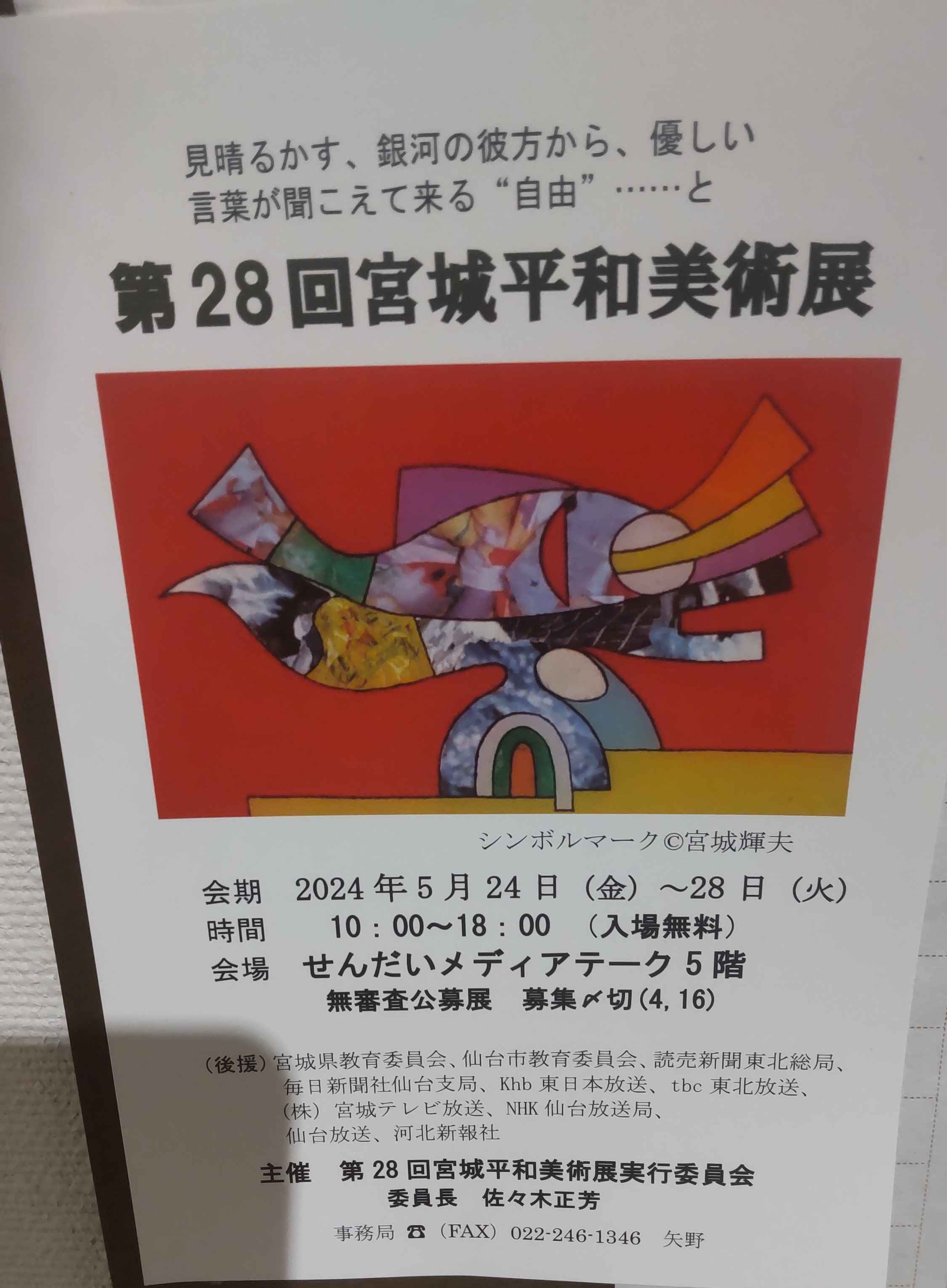 5月26日にせんだいメディアテークで開催されていた『第28回宮城平和美術展』を観てきました。日曜日だからかな。結構人出が多くて、ゆっくり静かに眺める……という感じではありませんでした。でも、私にとっては思い入れのある方たちの絵をたくさん見られて良かったです。
