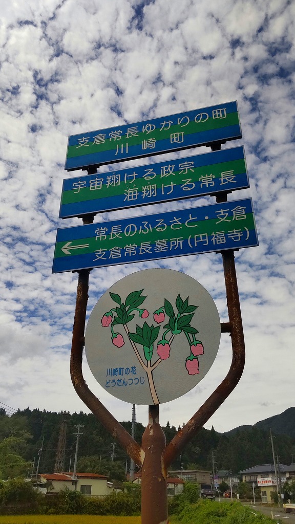 特別に何を見ようと思って行ったわけではありません。ただ、「川崎町にカワサキ(のオートバイ)で来ました」……そう言いたかったから行ってみた。そんな感じです。まあ温泉とかもあるみたいだし、仙台市から比較的近いし、ゆっくりのんびりしようかね……なんて、本当ゆるゆるのプランニングで行ったのですが、そんな私の心をビシッ! とさせる看板が国道286号線にありました。