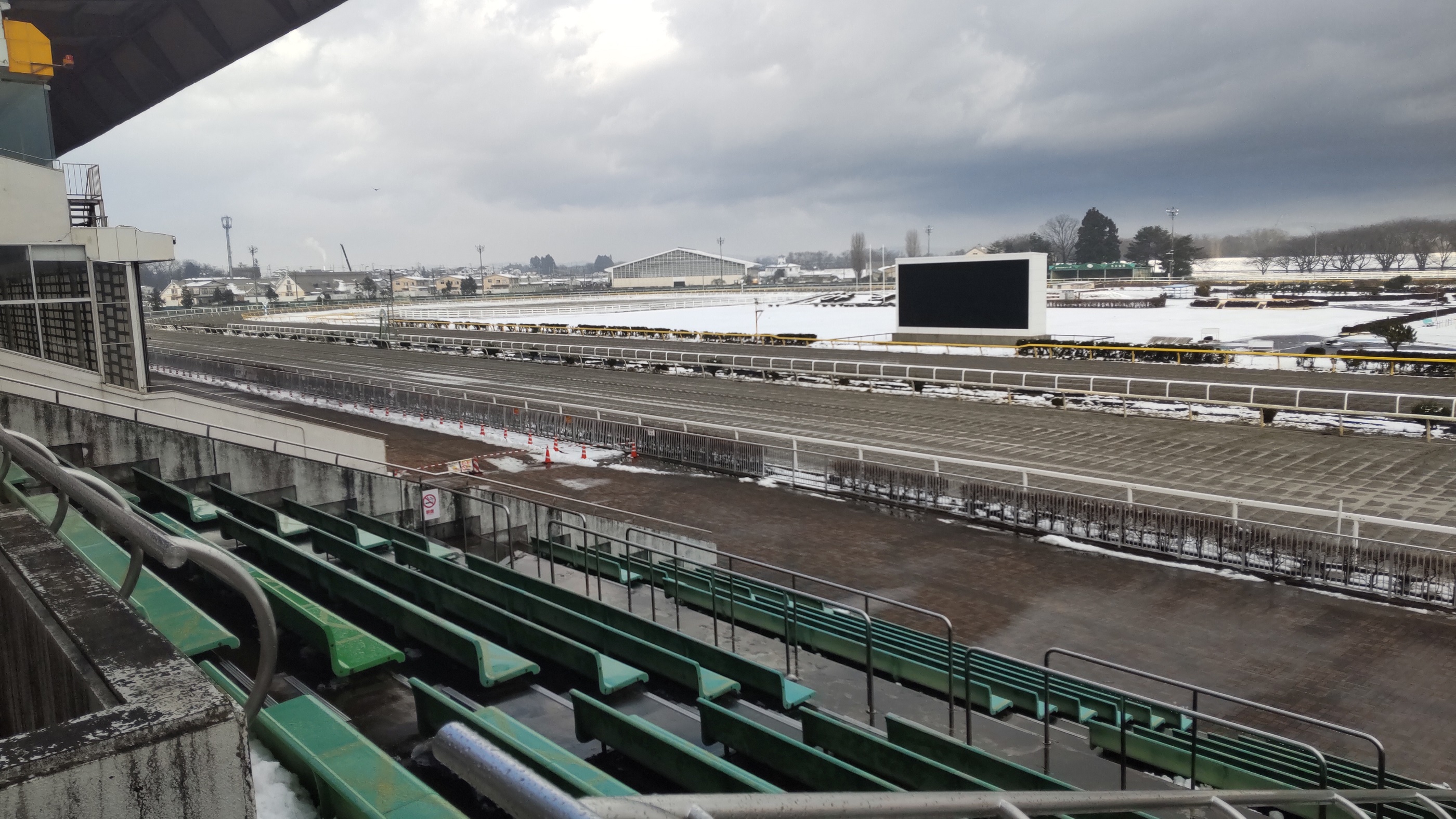 このスタンドに観客が満たされて、大歓声の中、競走馬たちが駆け抜けるシーンを想像しつつ、このブログを締めくくります。ひとつの経験として、やっぱり味わってみたいなあ。当たるかどうかはさておきね。
