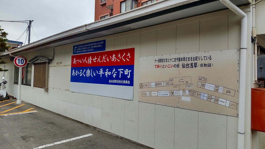 元々昭和感爆発というか……この仙台浅草という場所は、見てわかる通り道幅も極端に広いわけじゃないんですよね。そんな敷地内にお弁当屋さんラーメン屋さん居酒屋さん云々……といった個人個人のお店がギュギュっと密集していて……ついでに公衆トイレもあるから夜中に飲みまくってトイレに行きたい~って時も安心っていう温かい街なんですが……そんな商店街の店先にブルーシートしいてワイワイやるものだから、もうすれ違うのも大変! なんです。