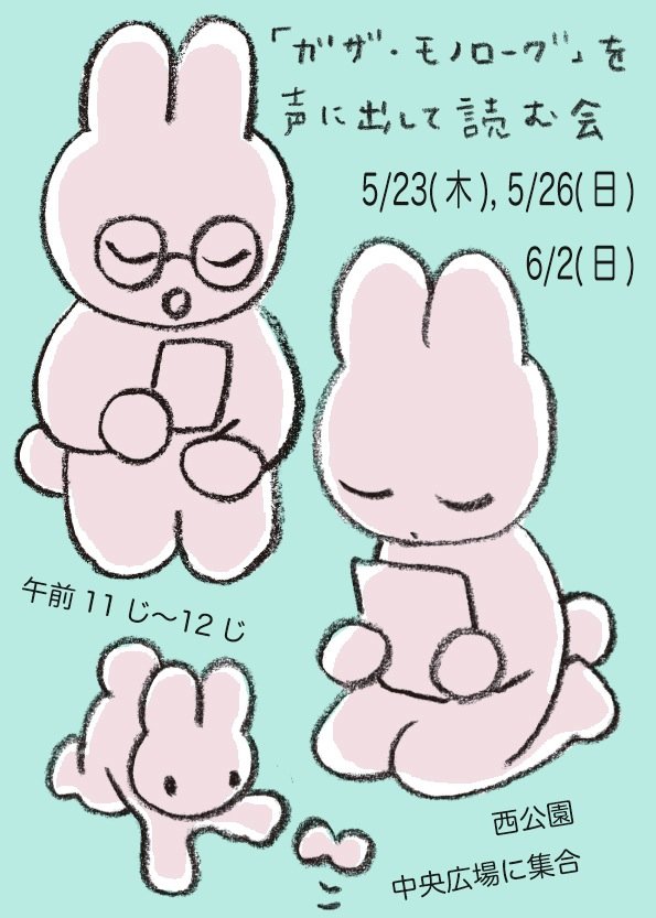 台本は「ガザ・モノローグ」。封筒に入った台本をそれぞれ手に取り読み上げる形で、一人ずつかわりばんこに読みました。もちろん私も読みました。私が読んだのは「戦争の長い時間」というものです。