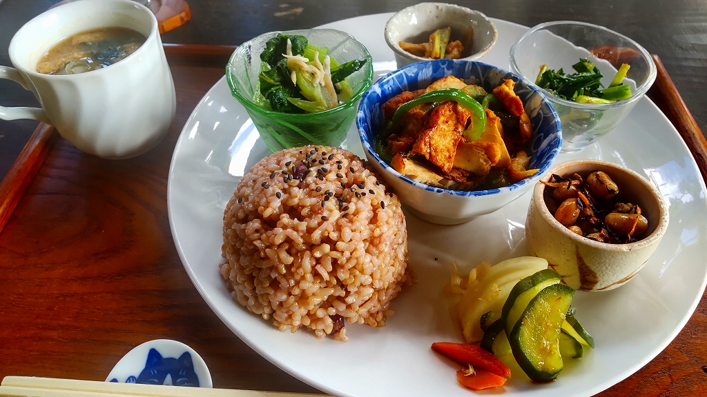代ヶ崎浜から火力発電所方面に走り、そうしているとお昼時になったので、『菜菜Cafe*キリカブ』でご飯を頂くことにしました。菜菜プレート(800円)です。