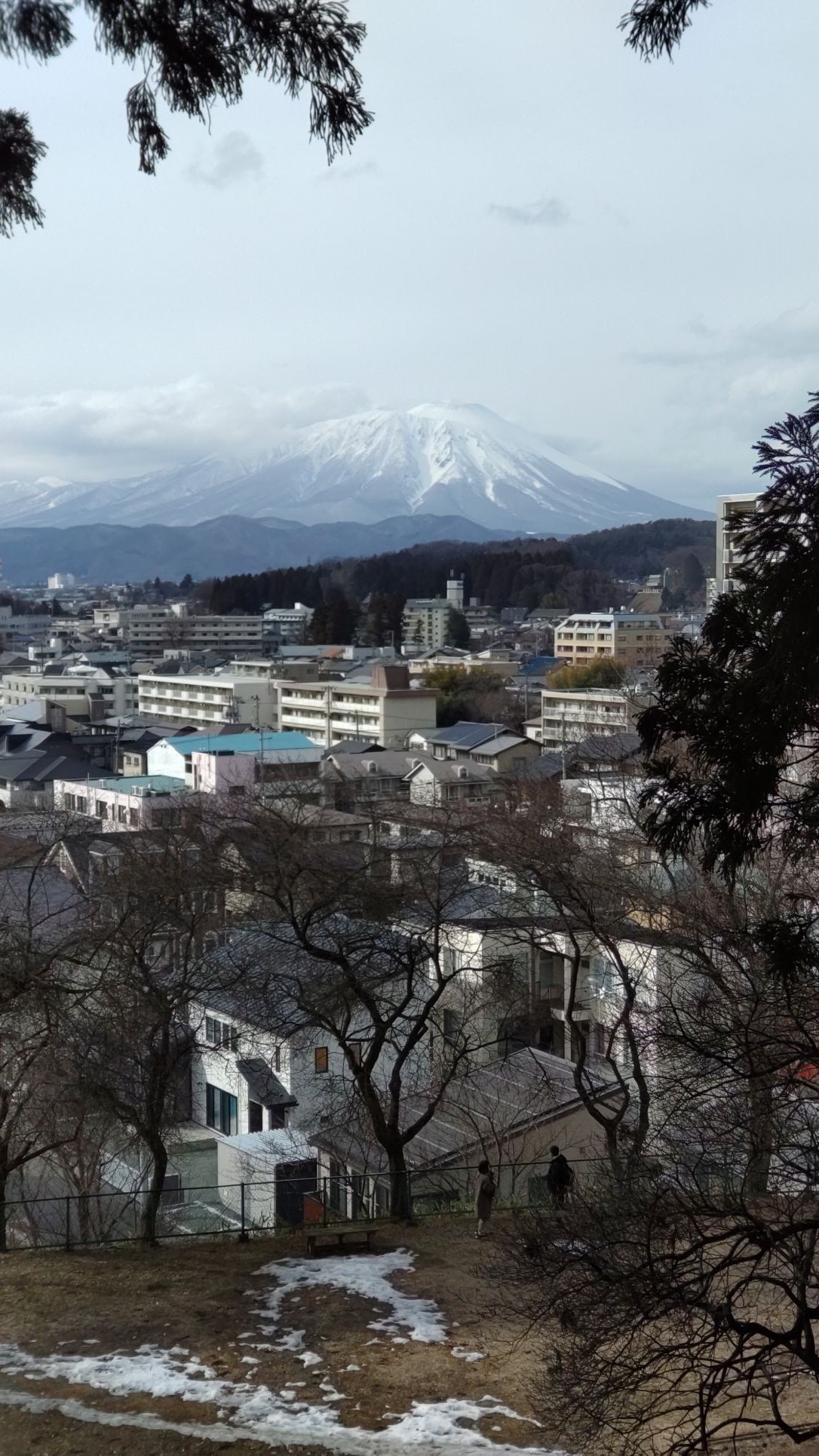 盛岡天満宮は小高い丘の上にあって、ここから街の景色と、岩手県で一番高い山『岩手山』がバッチリきれいに見えます。啄木は盛岡中学校(現在の盛岡一高)に通っていたころからこの場所がお気に入りだったようですが、すごく素敵な場所だなと思いました。