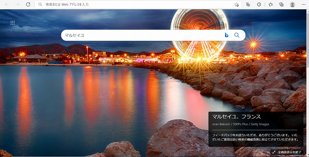 まじめな話はさておいて、毎日のルーチンワークーーすなわちパソコンを開き、今日使ったお金のことを家計簿アプリにお小遣い帳レベルで書き込もうとしたときにEdgeに現れた画像。ええ、皆様もご存じの、日替わり絶景写真です。今日の景色は「マルセイユ」。フランスの美しい港湾都市です。