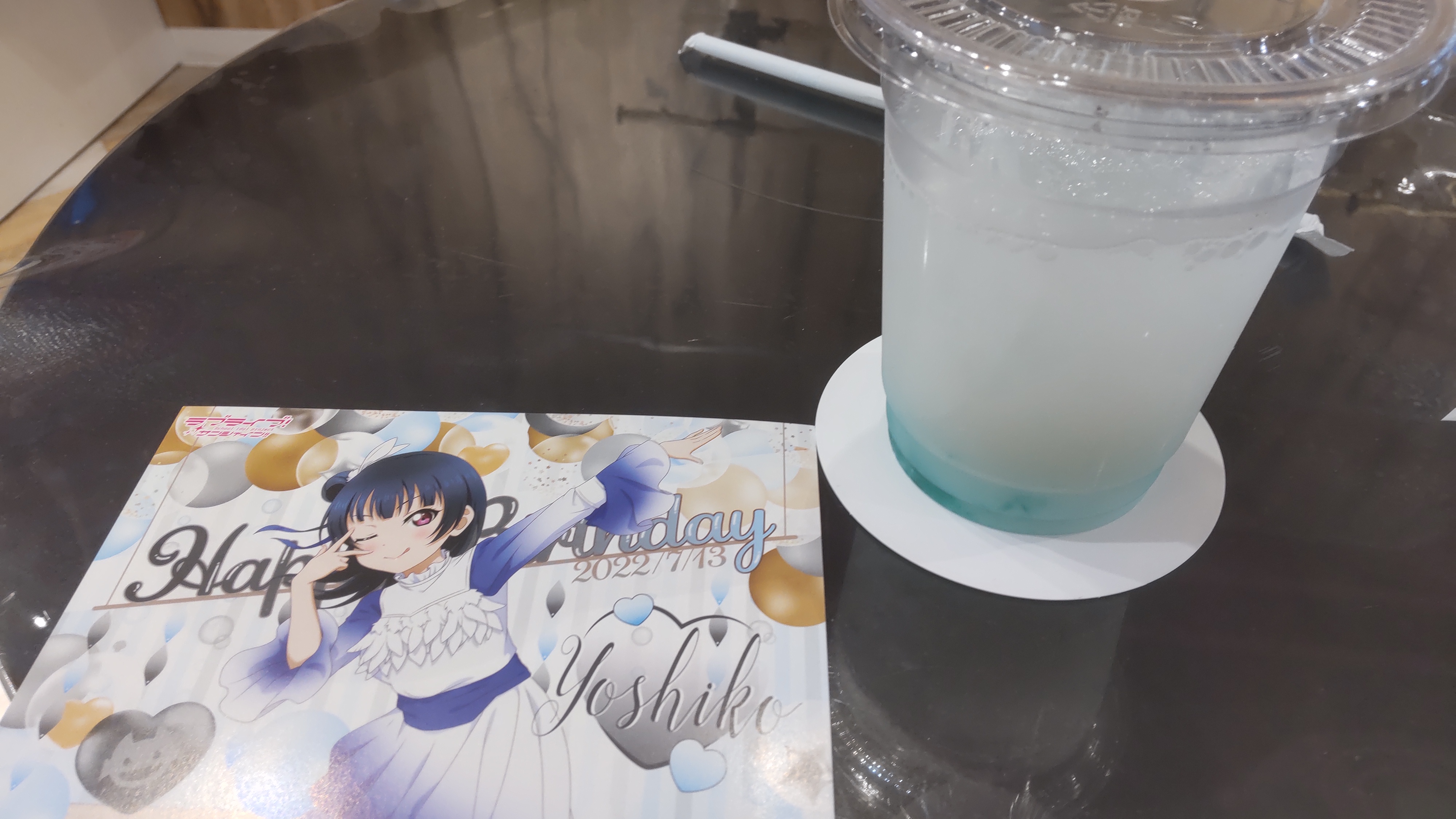 このブログはアニメ専門ブログではないので、一般の皆様に向けて申し上げますと、今日は超絶大人気テレビアニメ『ラブライブ!サンシャイン!!』の登場キャラクターである『津島善子』の誕生日なのです。そのアニメのキャラクターの誕生日をお祝いするという名目でGiGOコラボカフェでは「バースデーカード」というものを配布しておりまして。それをゲットするために万難を排して(2回目)開店直後の10時25分にお店を襲撃――