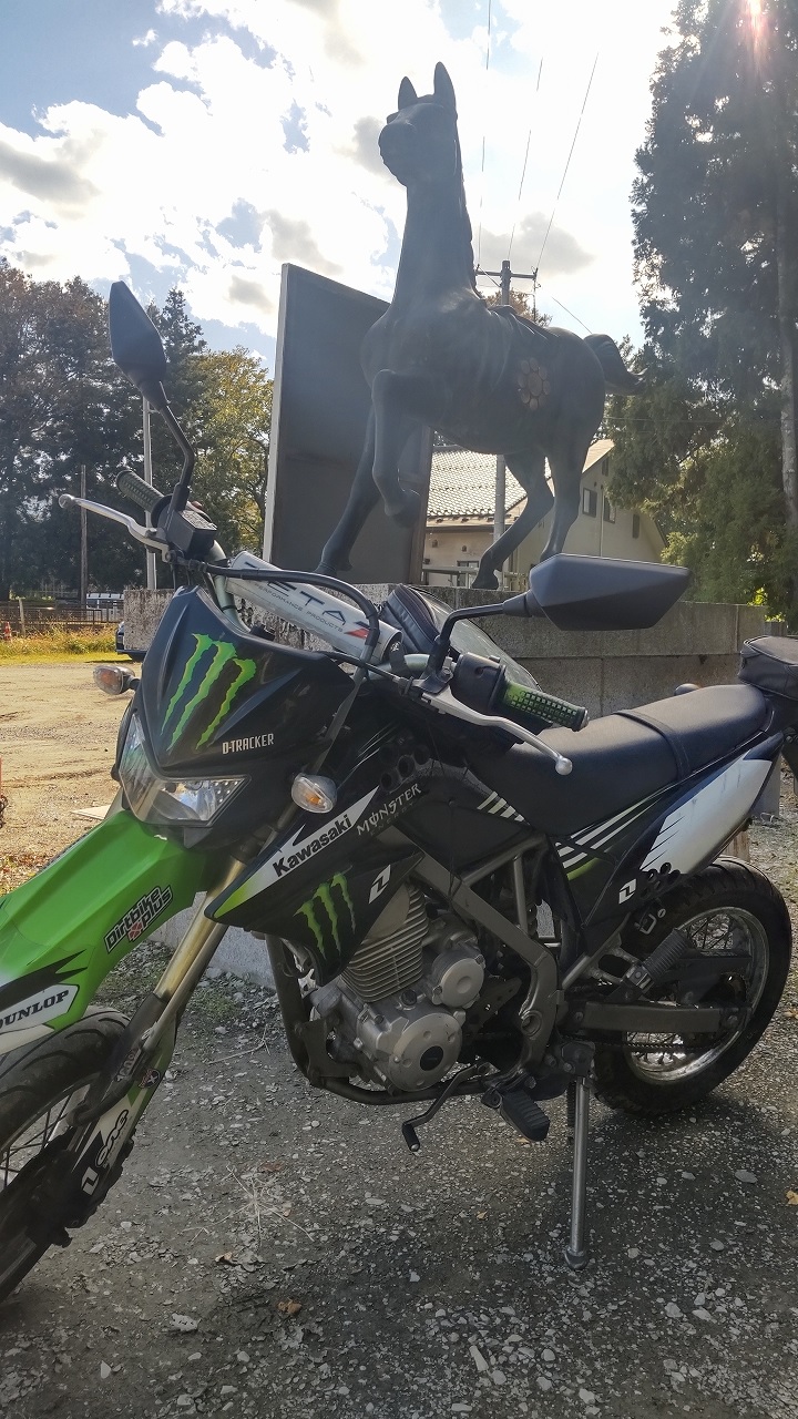 というわけで、私の愛馬といっしょに写真を撮らせて頂きました。なかなか上手に写真を撮ることができず苦心しましたが、参道正面にオートバイを止めるわけにもいきませんので……これだってちょっと参道にかぶってますけど……何とかお許しいただければと存じます。