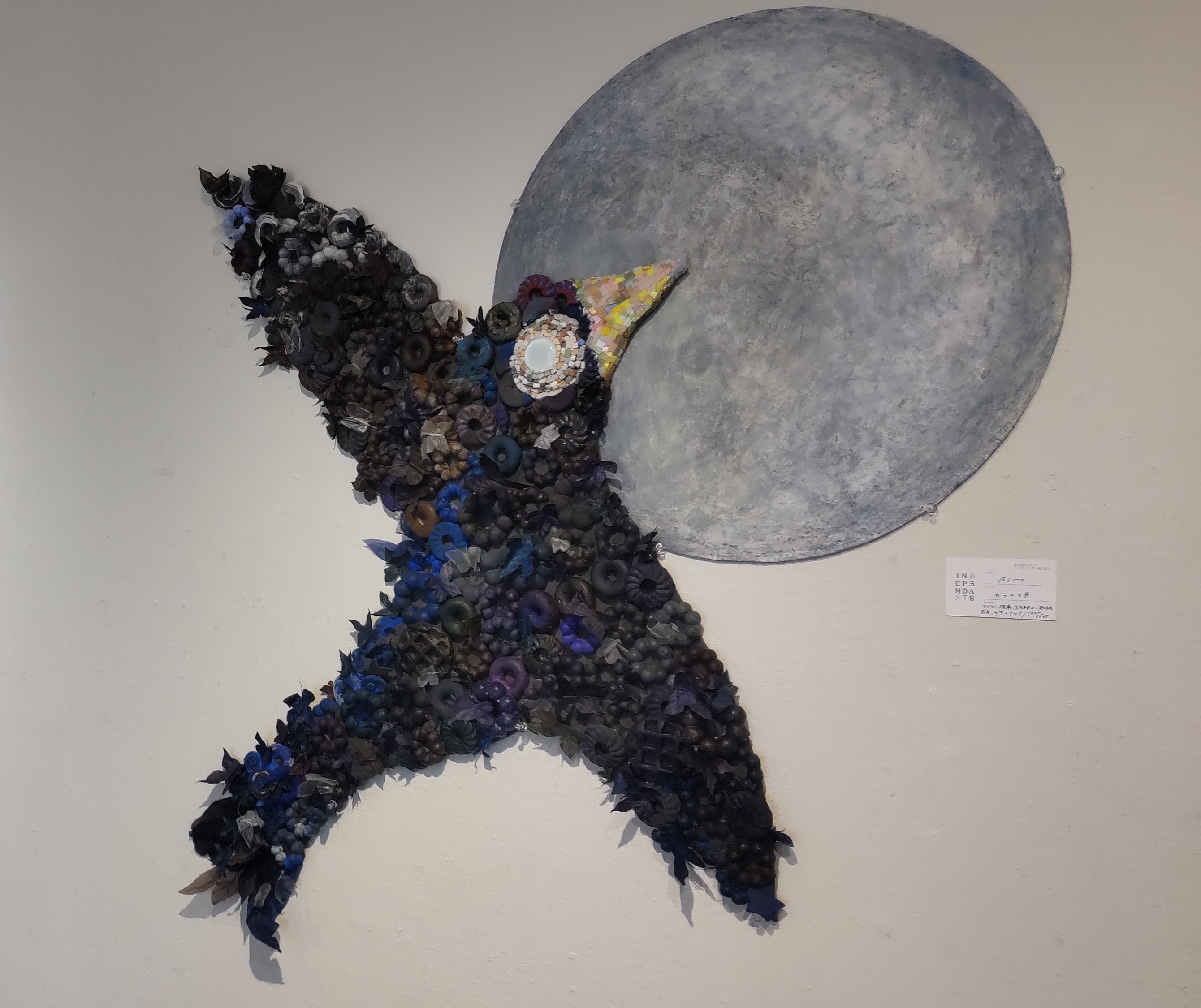 これは教科書で読んで「初めて泣いた」宮沢賢治の『よだかの星』をイメージして制作した作品だった、とのことです。たまたまというか……いや、アンデパンダン展は仙台市内の数か所のギャラリーで同時多発的に開催されていて、それを頑張って全部回った私ですから、出合うべくして出合ったというべきでしょうね。そして、個展が開催されることも、このアンデパンダン展で初めて行ったギャラリー越後さんで開催されることも何かの縁だ、って言って訪れた。そうしたところ、ちょうどRimoさんご本人とお会いすることができた。すべてにおいて縁でしょう。やはり、積極的に行動すれば、おのずと縁が強まるのです。