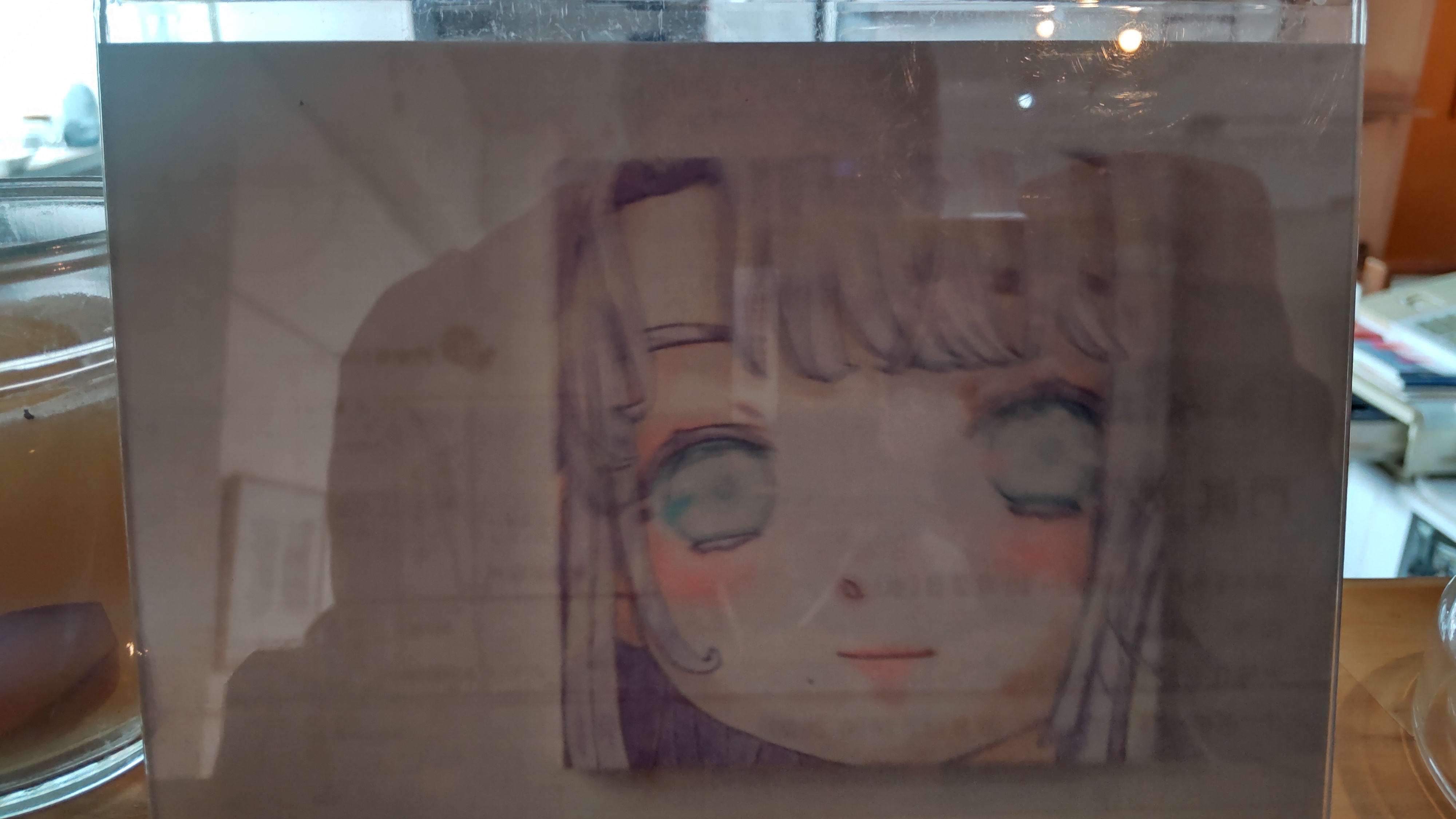 こちらの絵は今年の10月にタナランで開催されたアンデパンダン展に行った時、カフェスペースのカウンターの上にあるのを見つけて写真を撮ったものです。特に説明書きとかはなかったのですが、パッと見て「あ、門眞妙さんの絵だ」と思ったものの、万が一間違っていたら一生ファンと名乗る資格がないくらいの失態となるので、それを恐れて言い出せませんでした。