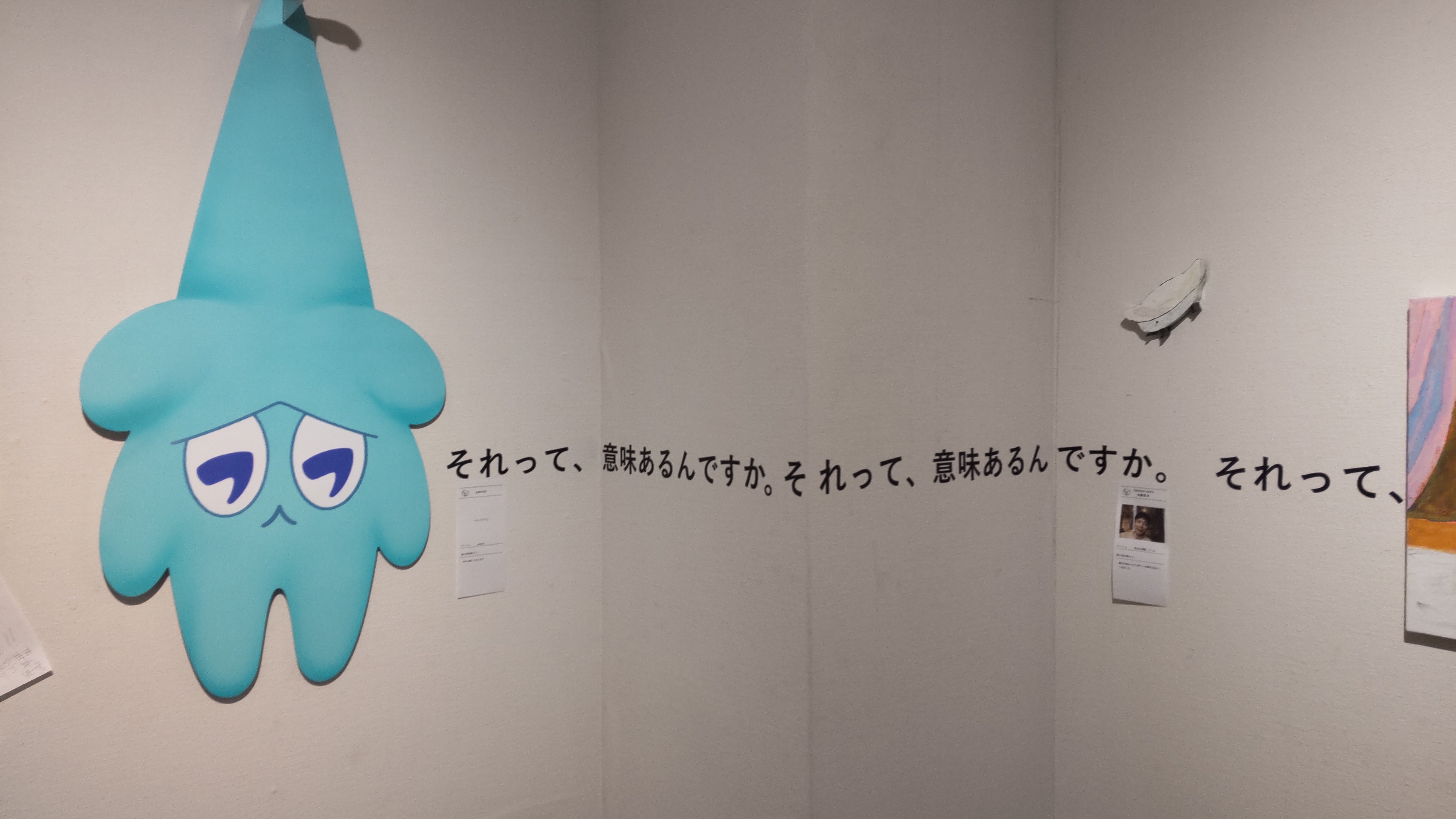 ま、一応アンデパンダン展の方を見てから、シームレスに隣の展示会場に移動しました。たまたまギャラリーの方がいらっしゃったので、その人に少し声を掛けて、いざ見てみましょう……企画展の名前は「それって、意味あるんですか。展」とのことで……むむ……。