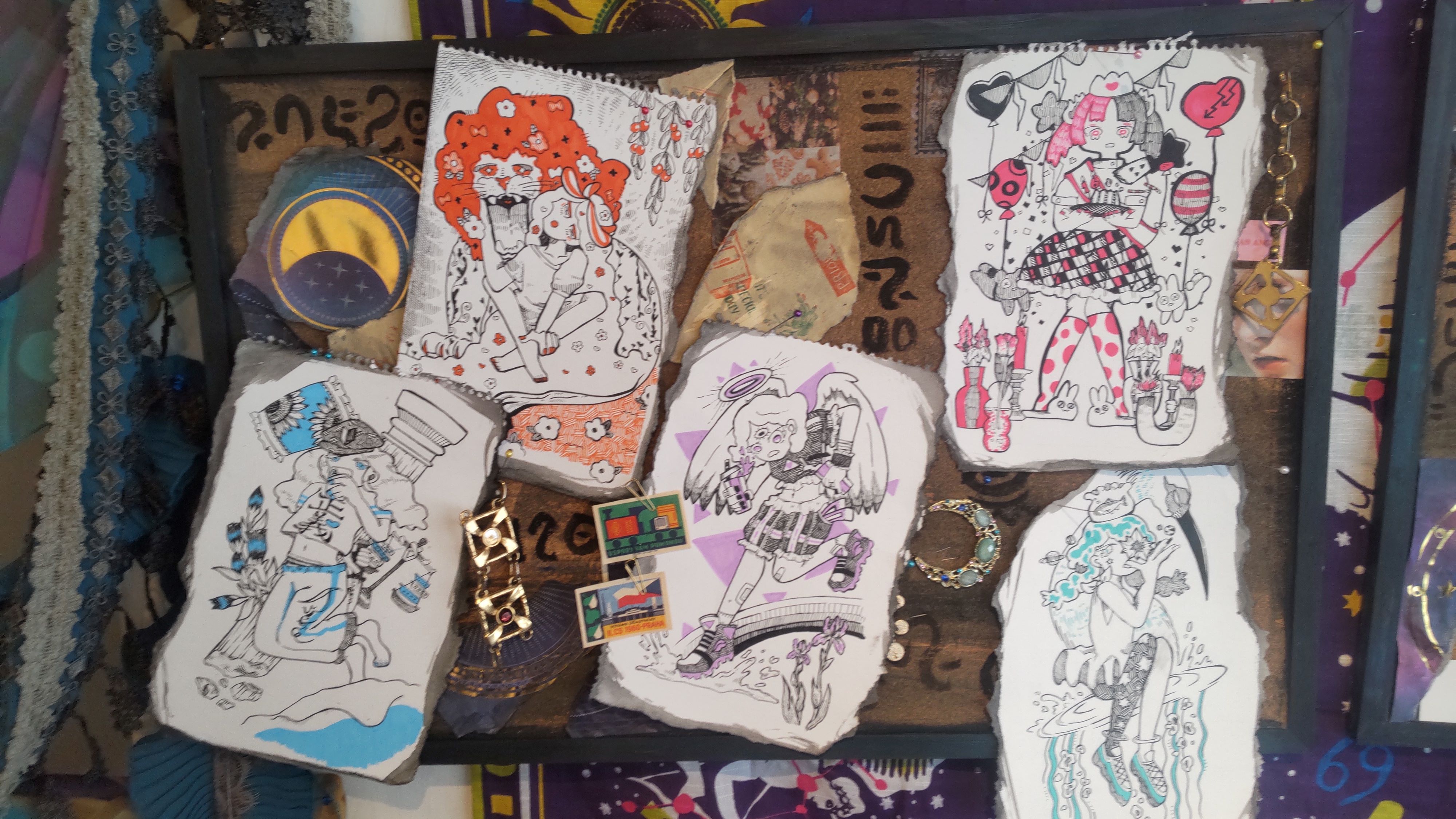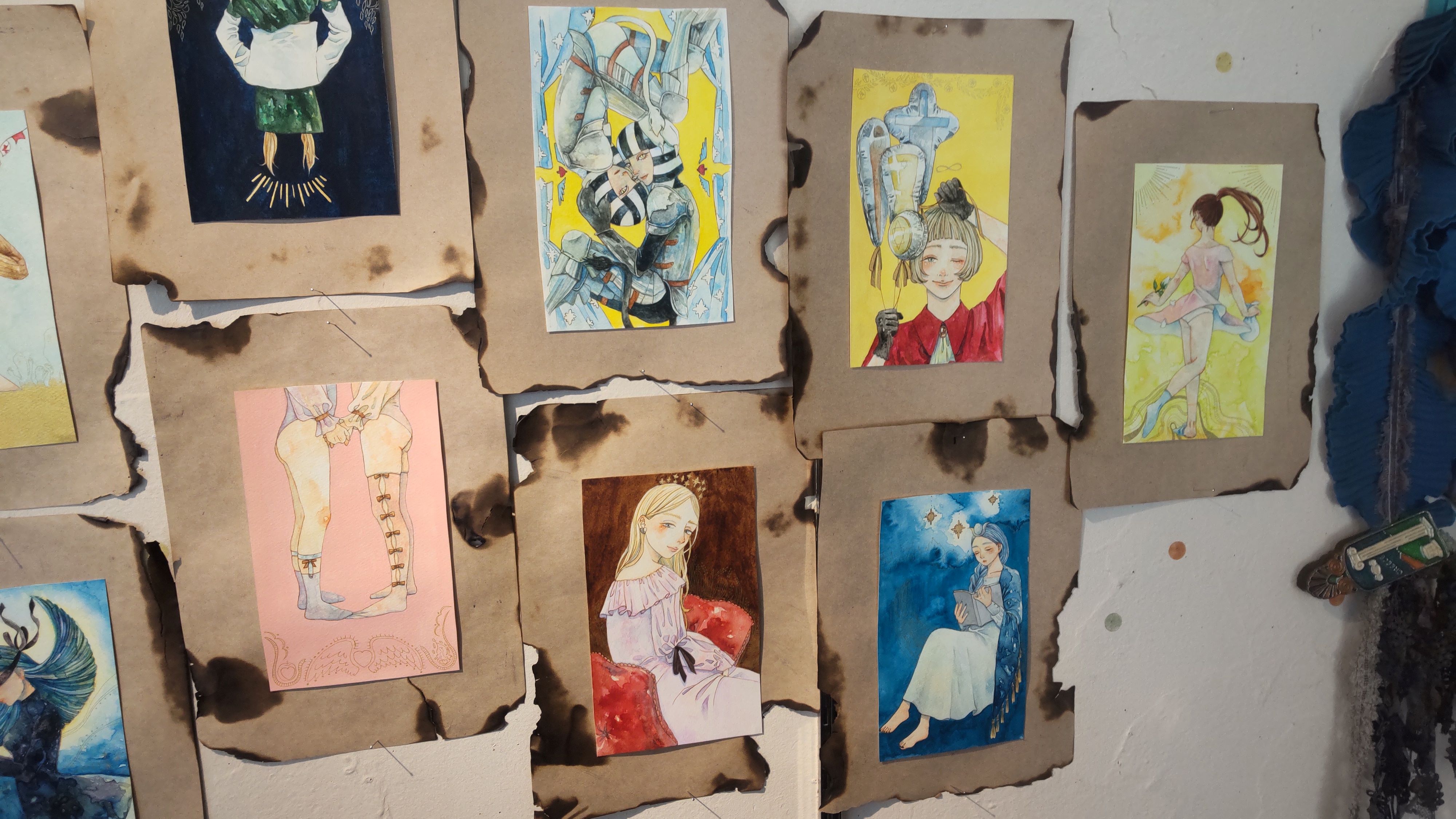 「元々こういう幻想的なもの、神秘的なものが大好き」というのは会場にいらっしゃった作者の『秋草おと』さんにうかがったお話しです。自分たちは本格的な占いはできないけれど、こうしてタロットカードをモチーフにしたイラストを描いた……というのが今回の展示概要。この点においては私も強く共鳴するところです。私はイラストも描けないので、その分こうして足を運び写真を撮りポストカードなどをお迎えします。せーの、ドン!