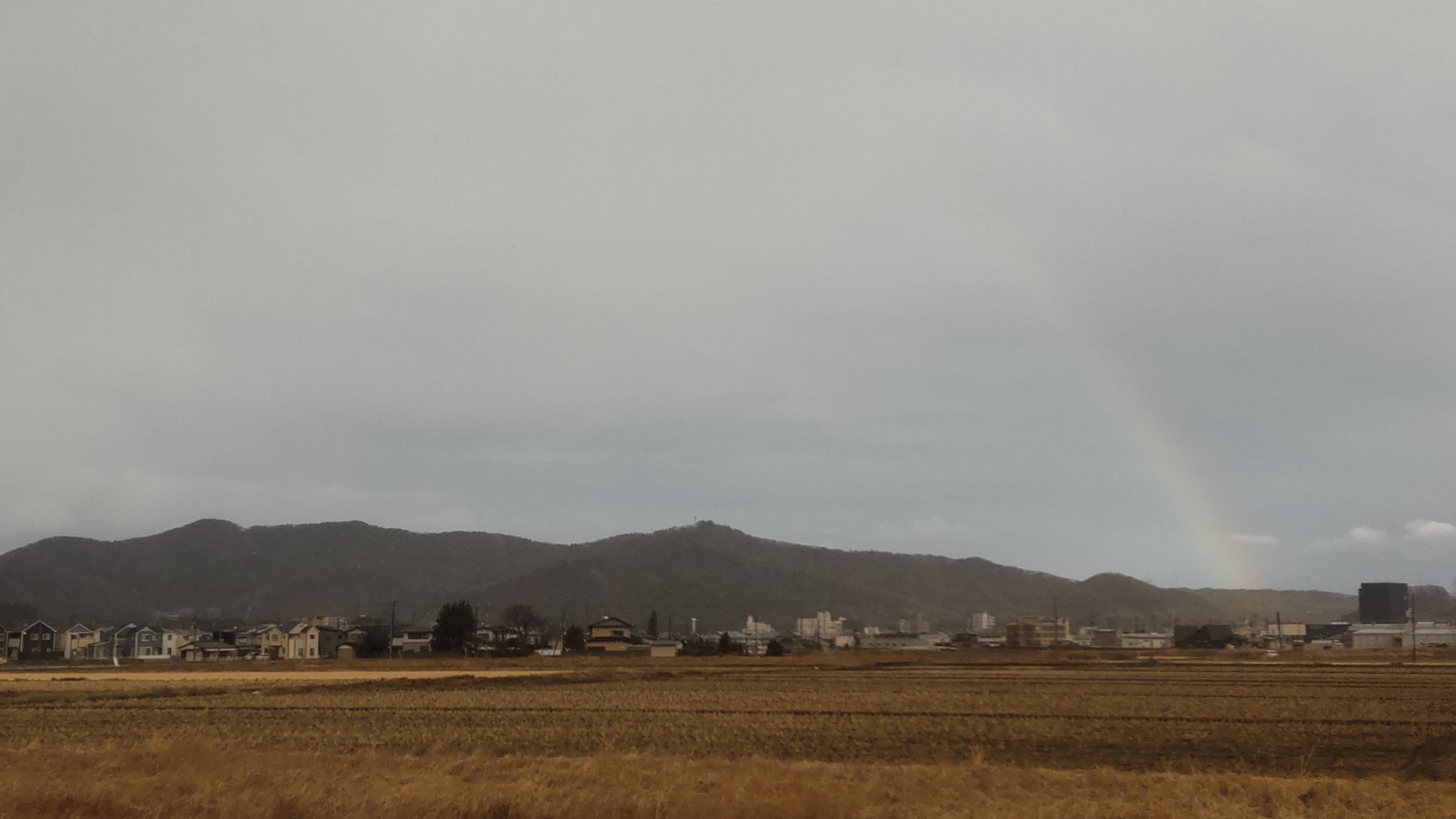 撮ってみて、その出来栄えに「写真にはうつらない美しさがあるから……」という歌を思い出しました。私の印象としてはもっときれいに見えたんですが。まあとりあえず「久々に虹を見た」という事実だけ伝われば幸いです。