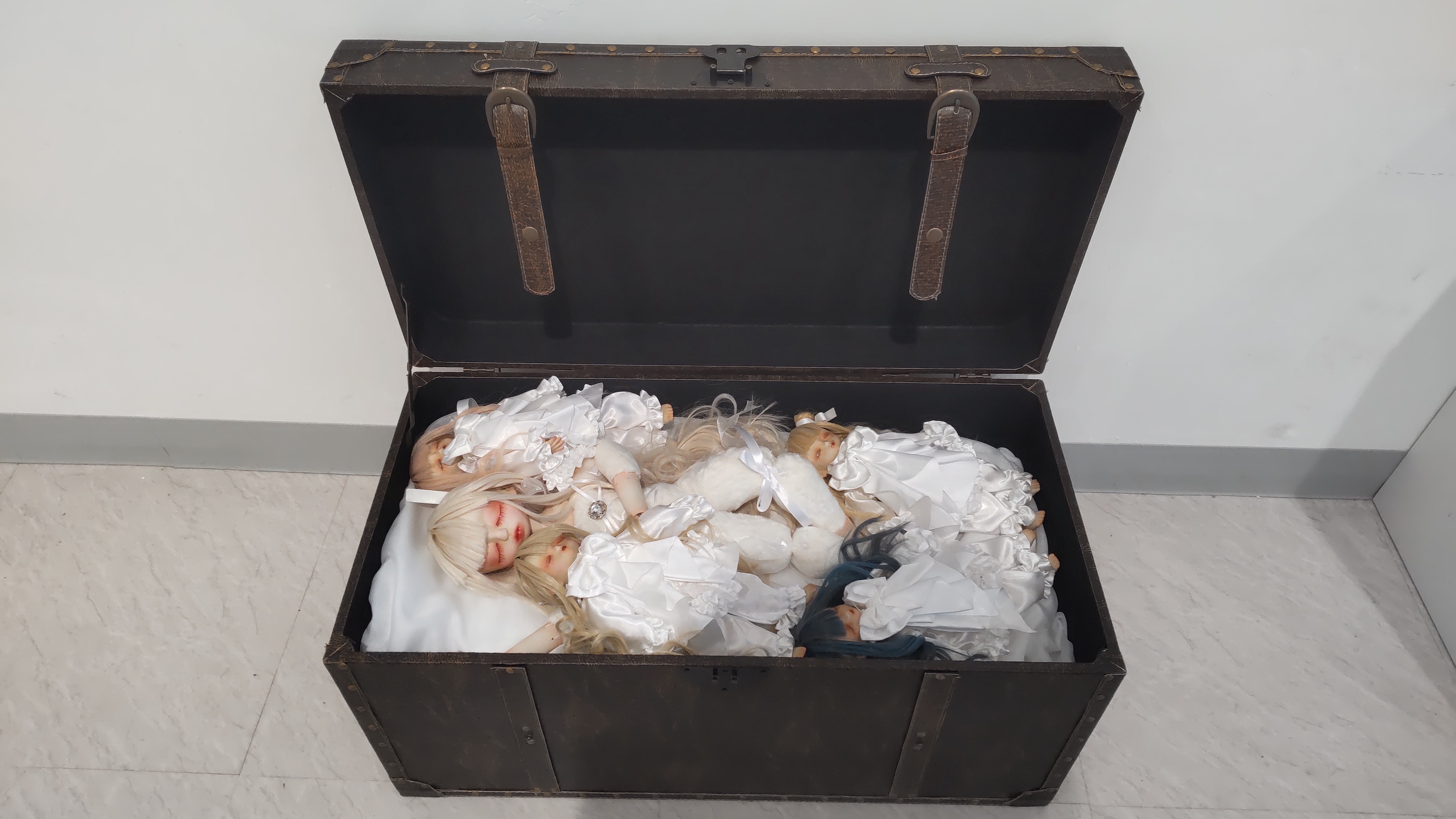 清水さんは兎をモチーフにしたぬいぐるみや少女の人形、更に球体関節人形など、いきなり私の心をときめかせる素材の人形を製作されていたのですが、あえてその中から一枚を選ぶとすると、これですね。宝箱だから大切なものをしまっておくんです。