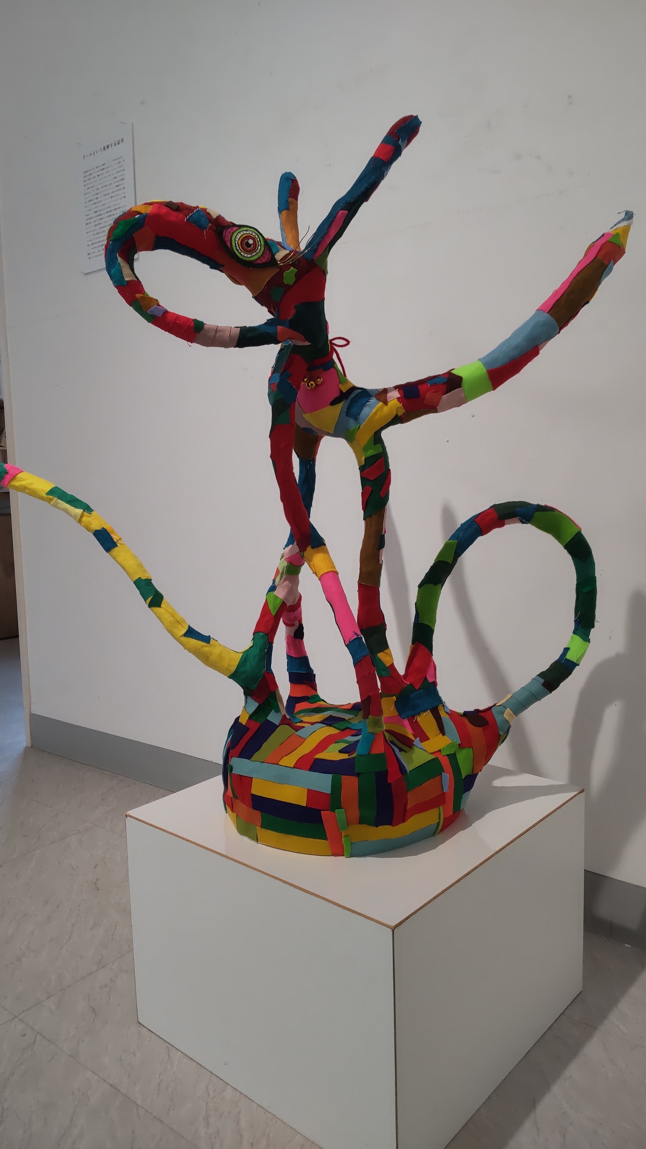 今回、会場に並ぶ作品は技法も素材もさまざまです。しかし一貫して、それぞれ人形の役割を連想させる力があります。それらを鑑賞しながら、人形と人間が築くであろう関係性について、改めて探っていければと考えています。(会場に掲示されていた展示概要)
