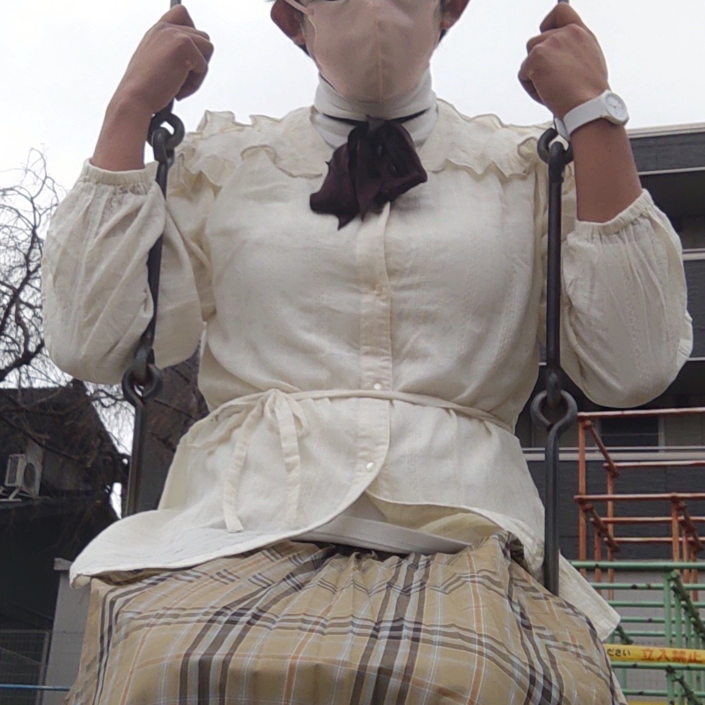 昨日古着屋さんで買った、いぎなり可愛いブラウスを着て写真を撮ってみました。スカートは、最初に買ったものですね。コーデとか着方そのものとか、まだまだ手探り状態ではありますが、これほどまでにヒラヒラしたふんわりした服を自分が着て街を歩くというのは、いかにも心ときめくものであります。