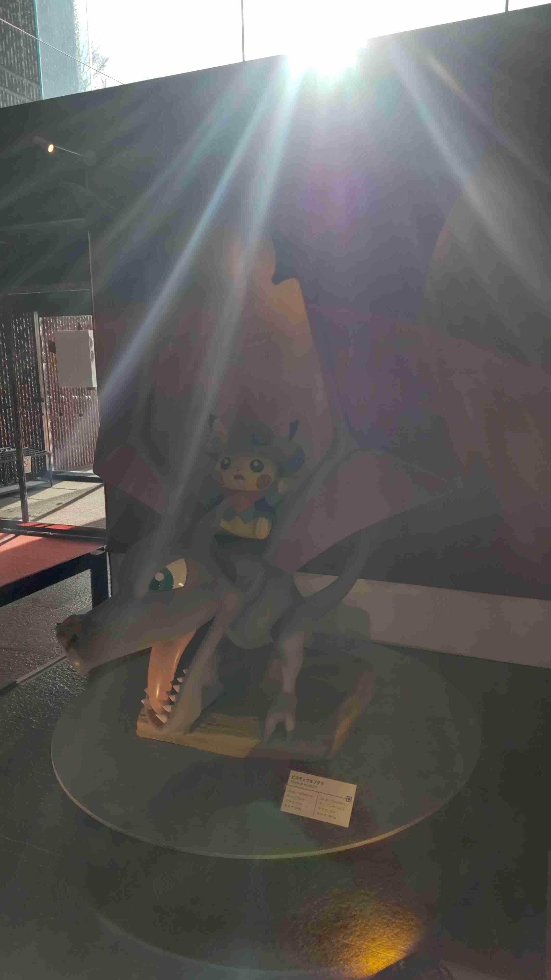 最後に入り口付近にいたプテラ&ピカチュウの写真を。タイミング的に超逆光になってしまって、後ろから「はかいこうせん」を放たれたようになってしまいましたが、これはこれでね。その瞬間にしか撮れない写真なので、あえてこちらを公開するものとします。楽しかったです!