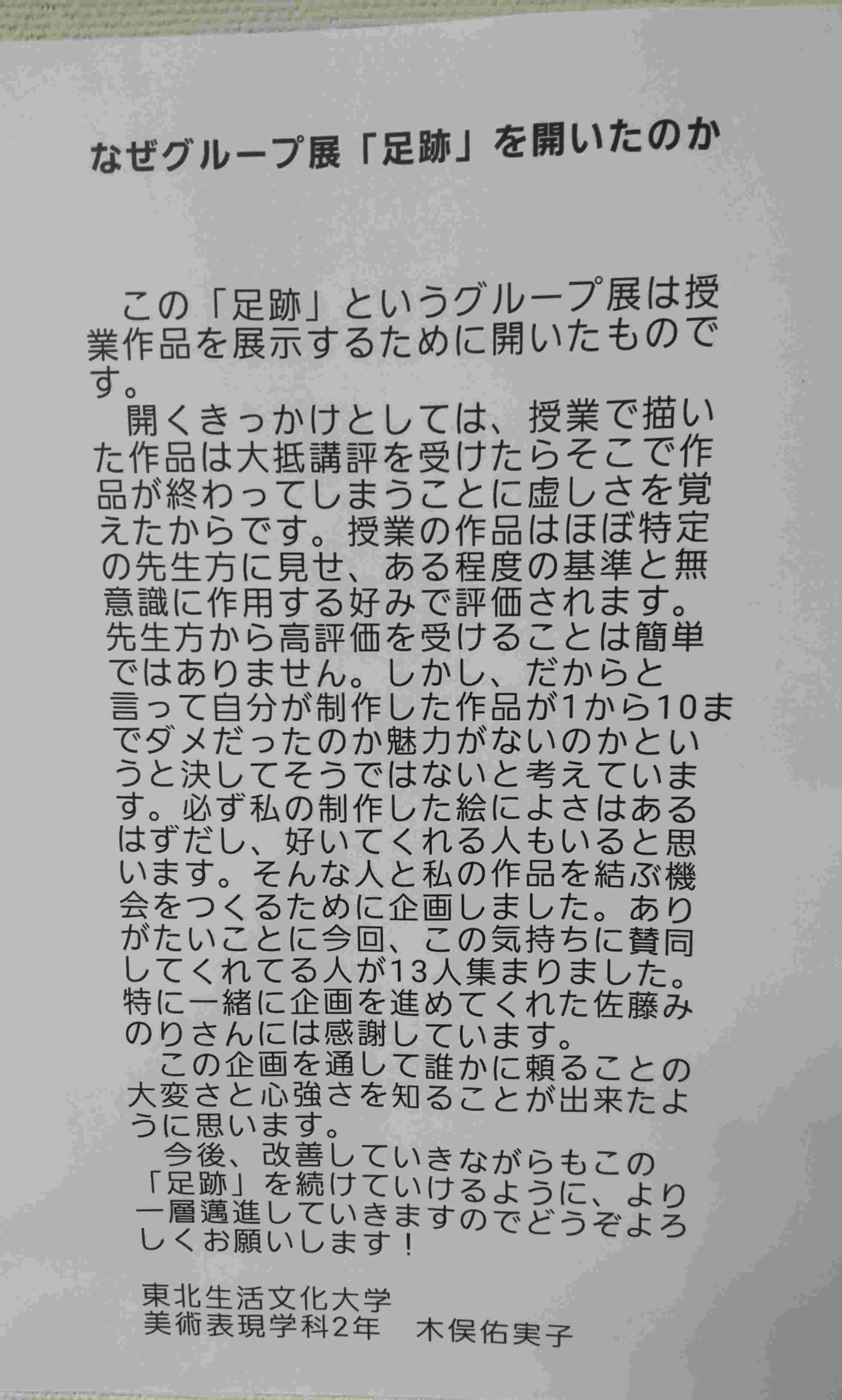 この「足跡」というグループ展は授業作品を展示するために開いたもので す。