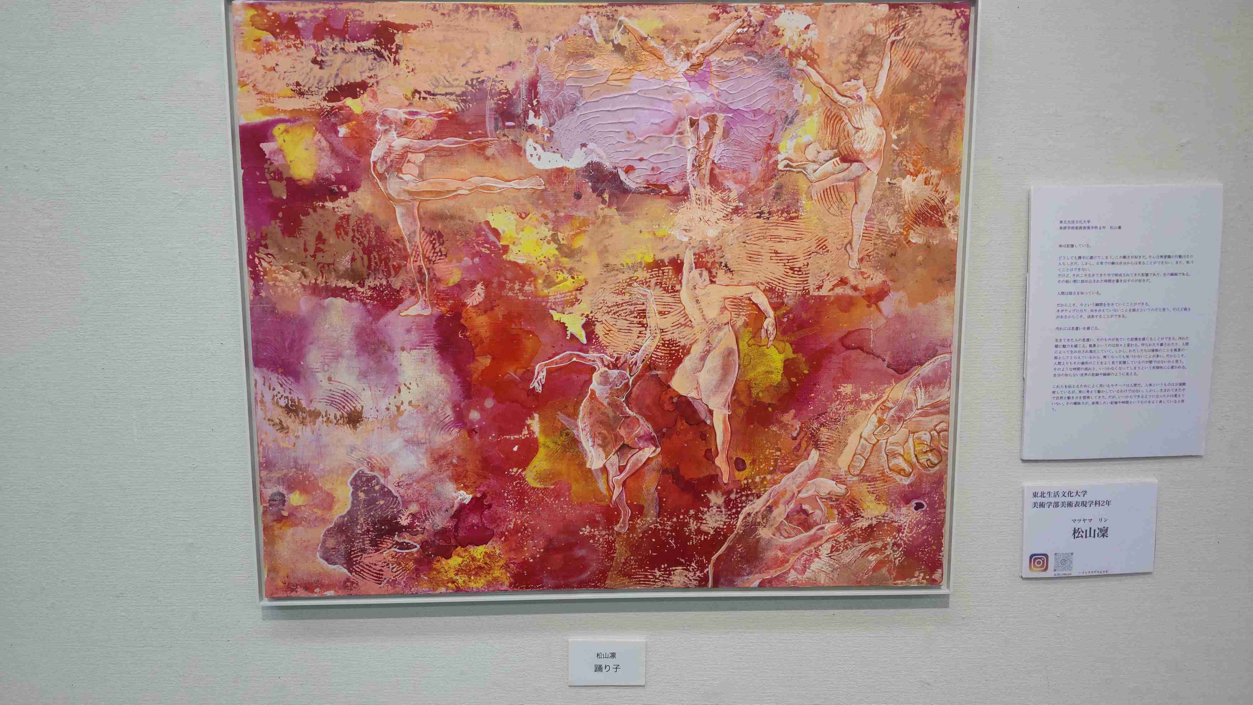 作品のモチーフは本当、描き手によってさまざまで……植物・動物・人物・風景また油絵に漫画イラストそれからレリーフなどなど、とってもバラエティに富んでいました。また一部の作品にはこうして内容に関するステートメントがあって、作品の理解と想像力の強化に役立ちました。アートとブンゲイ、どちらも大好きなので、こういう言葉による解説はありがたいです。
