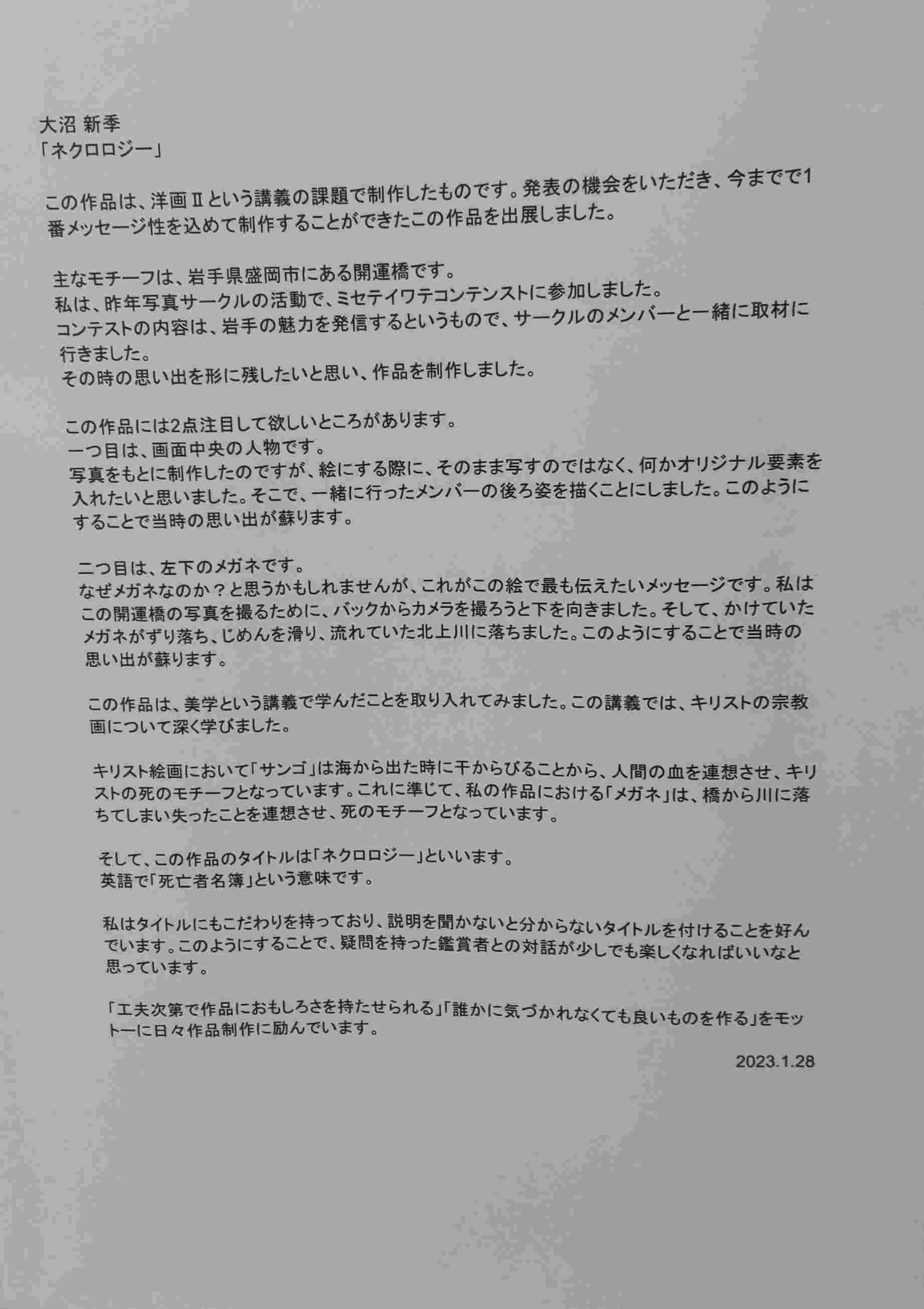 その答えは、絵の隣に描き手の大沼新季さんが添えてくれたステートメントにありました。