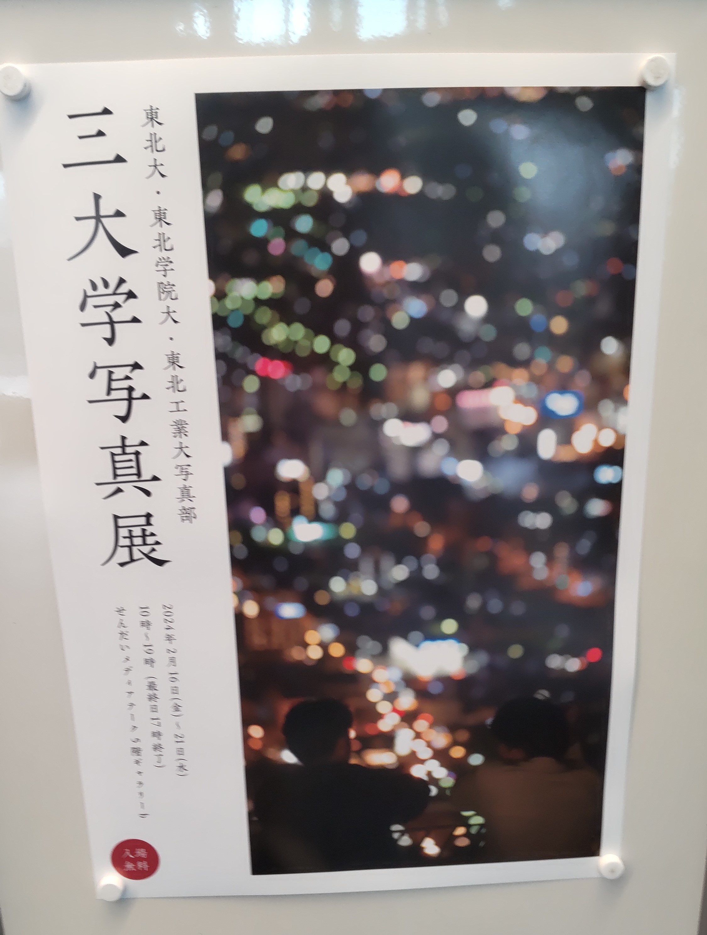 という流れで書いてしまうのは少々申し訳ないのですが、2/20にタナランで「にがつのねこといぬ」展を見て、さらにその後東北工業大学の卒展を見た後、同じせんだいメディアテークで開催されていた東北大・東北学院大・東北工業大の写真部有志による三大学合同写真展を見てきました。