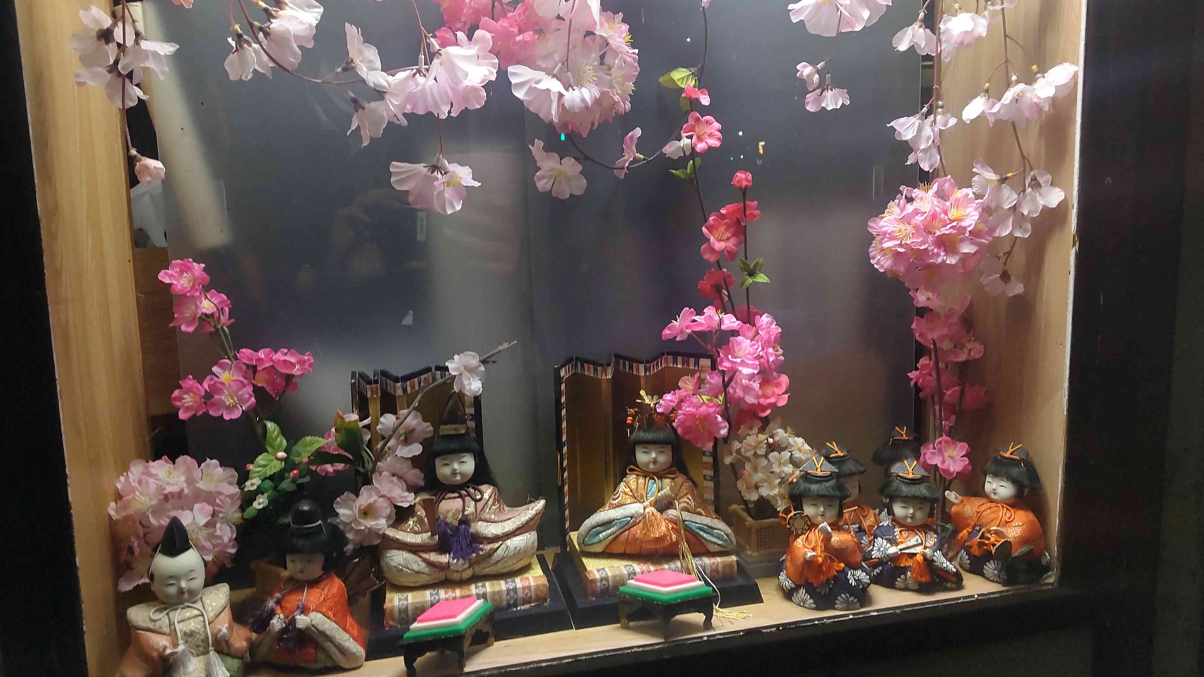こうして伝統的なひな人形の写真をいくつも投稿していると1枚目に投稿したひな人形が少々安くみられるかもしれませんが、これがいいんです。これは私のアパートの近所にある床屋さんの店先なんですが、端午の節句とかハロウィンとか、季節によって飾り付けが変わっていて……通りすがりに眺めてみると「ああ、そうだよねえ。今は〇〇の季節なんだよねえ」とリマインドさせてくれるのです。なので私にとって最も身近なひな飾りがこれなんです。