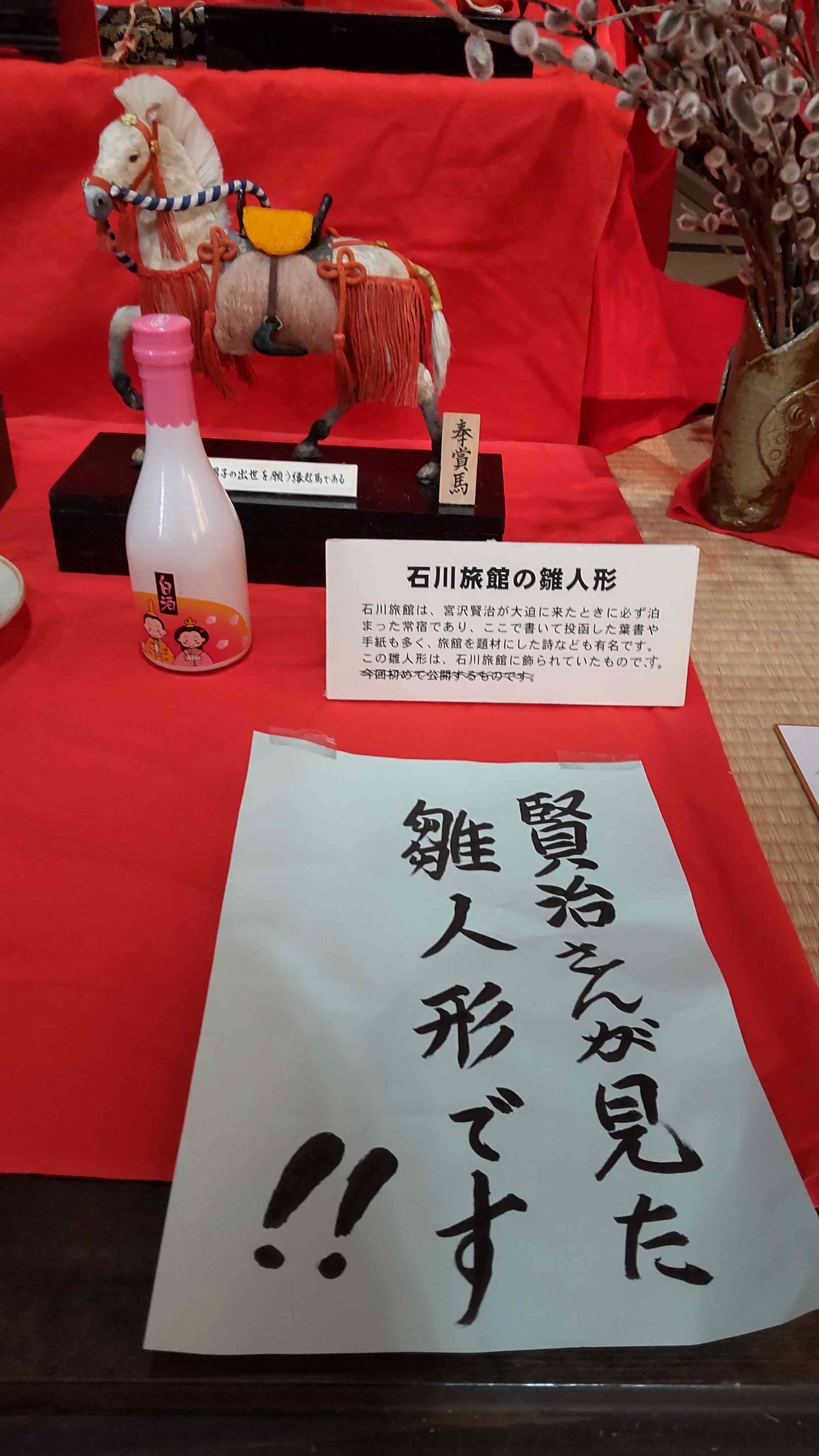 これは大迫町にあった石川旅館のひな人形です。この石川旅館というのはかの宮沢賢治が大迫に来た時に常宿としていた場所だったので、このような力強いキャプションがついています。そう言われれば私だって「そうかな!」とうなずくしかありません。正確に言うと大迫町を訪れたのは2022年の3月4日なので、おそらくまた今年も展示が行われていることでしょう。今日なんかは日曜日だし、きっと大勢の観光客が大迫町でニギニギヤカヤカしていることでしょう。上巳の節句、あなめでたや。