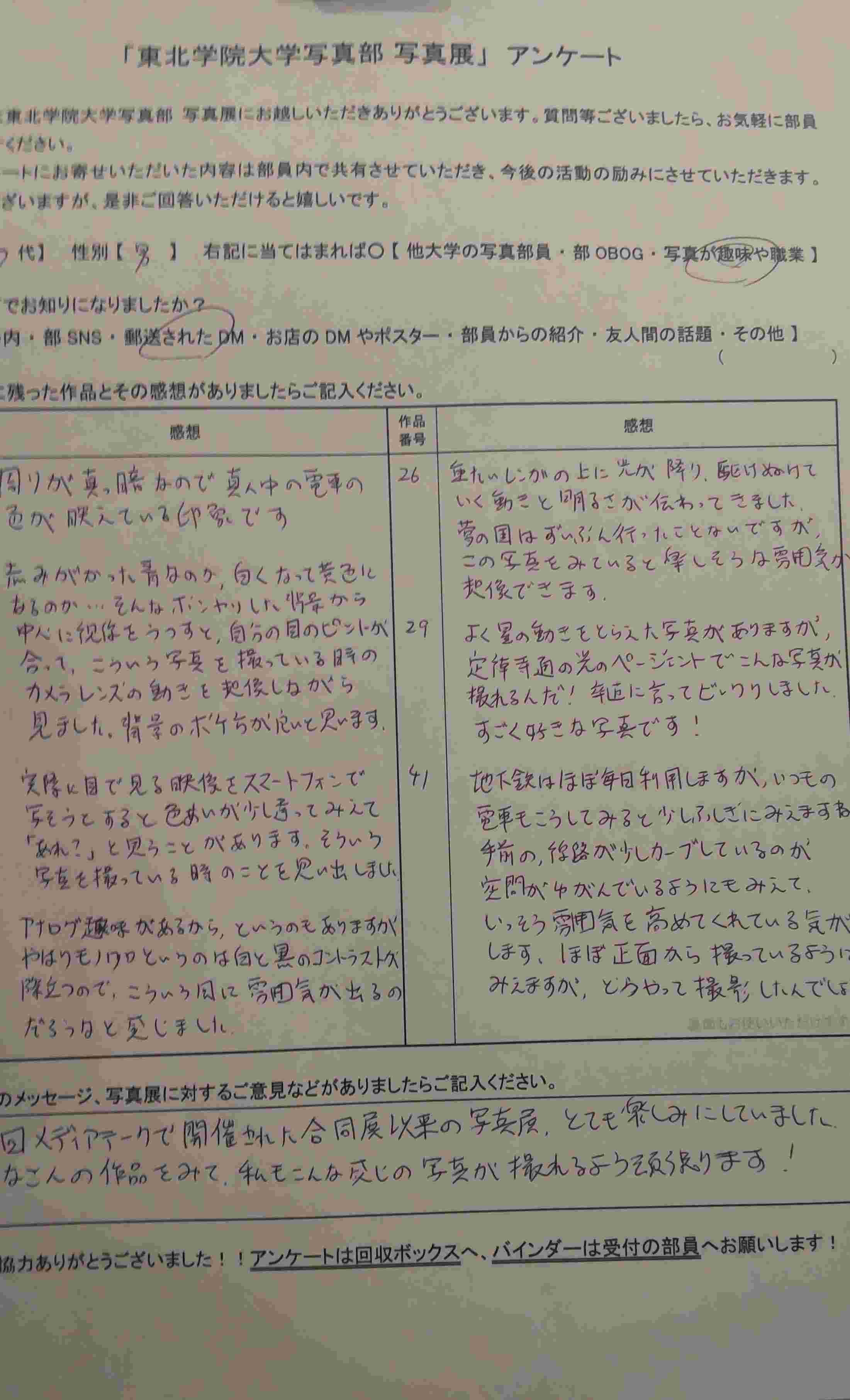 同じ大学写真部の写真展にしても、3/9に東北工業大学一番町ロビーで見た写真展は、また違った感じだったんですけどね。まあその点は学校のカラーということでしょうかね。