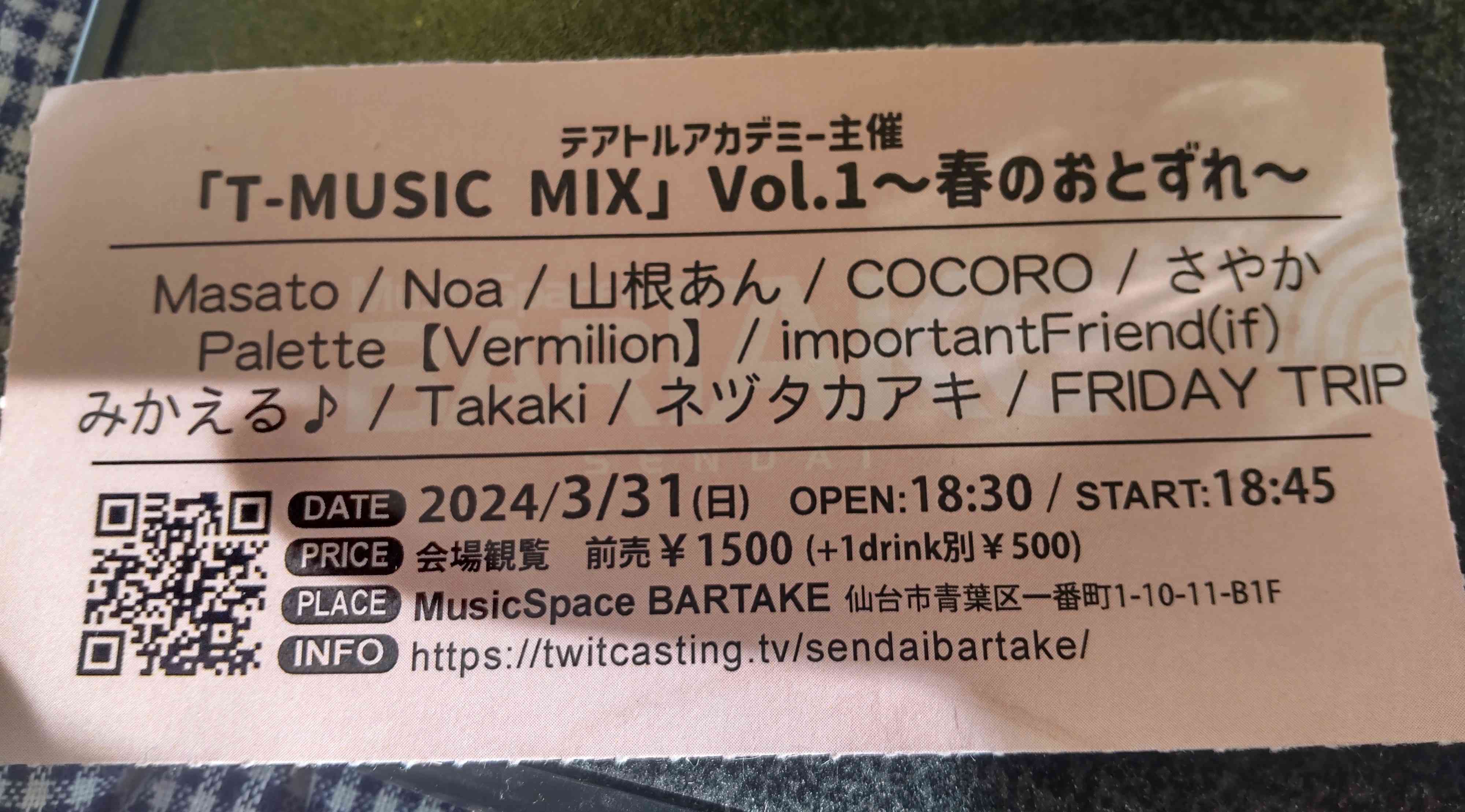 私のSNSにいいねをつけてくれたことで名前を知り、昨夏、勾当台公園の地元の音楽フェスで歌を聴いたところ「これはいいね」と直感しファンになったのですが、ライブで聴くのはそれ以来となります。