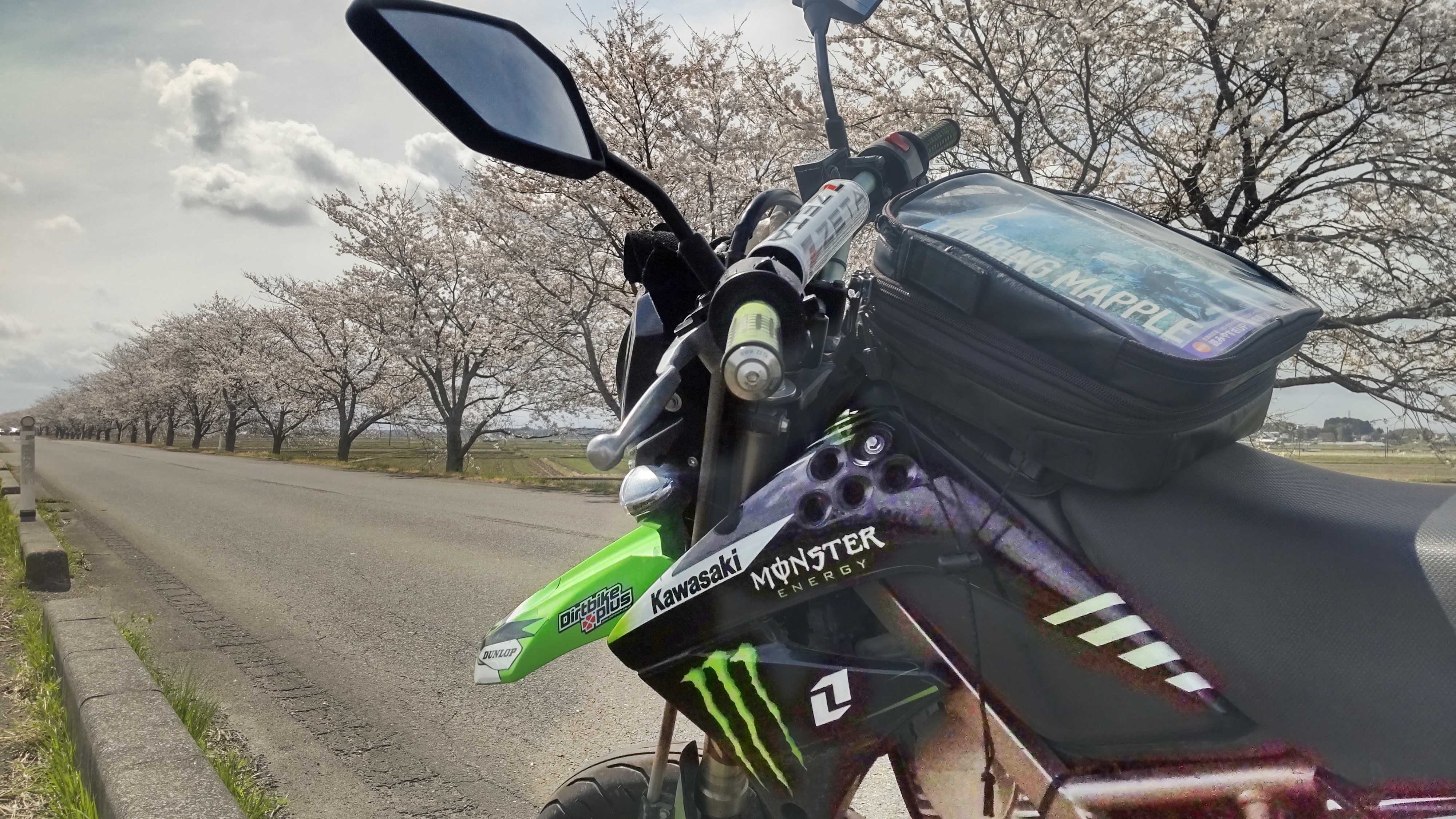 1枚目の写真は、時系列的にはちょっと前後するのですが、登米市から涌谷町に移動している途中の道路で撮影した写真です。1km以上はあろうかという桜並木を横目にビューンと駆け抜ける気持ちよさはオートバイ乗りの特権です。車でも自転車でも同じだけ景色を楽しめると思いますが、いずれにしても乗り物に乗ってこの街道を駆け抜けるのは『アウトラン』的な楽しみです。宮城県内で最も有名なのは大河原町の「一目千本桜」ですが、こちら……登米市南方の一目千本桜もなかなかの絶景なのであります。