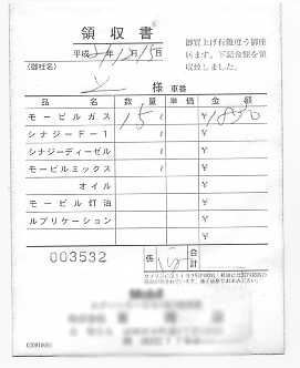 3台と止められないような狭い敷地もそう(失礼!)、ガソリンをどれくらい入れたかを示すメーターもグルグル回るドラム式だし、何よりもこの領収書ですよ旦那! この情報化社会にあって手書きでサラサラッと書いた領収書! しかも宛名は『上様』だからたまらない。上様であらせられるぞコンニャロー!